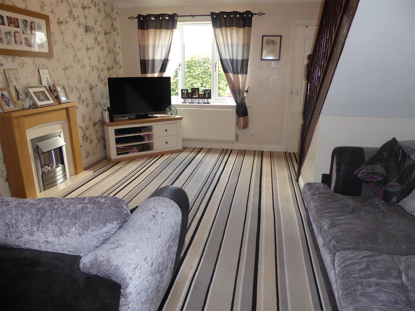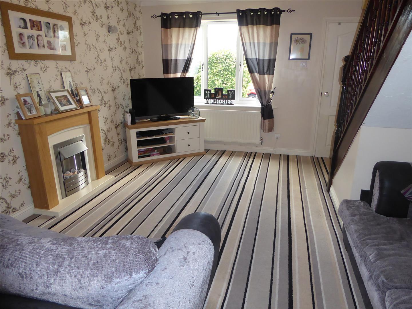 Tastefully decorated with double glazed window to the front aspect, attractive fire surround with Chrome electric Living Flame fire, wall lights with matching centre light fitting, spindle balustrade staircase leading to the first floor and coving to the ceiling.