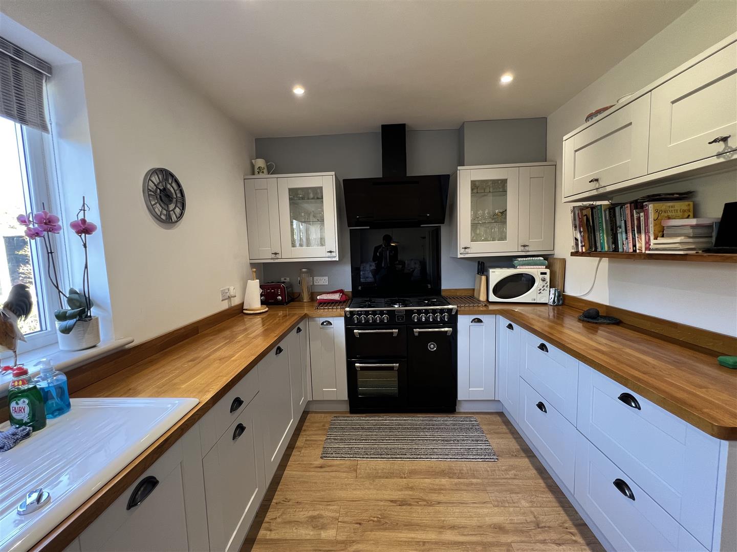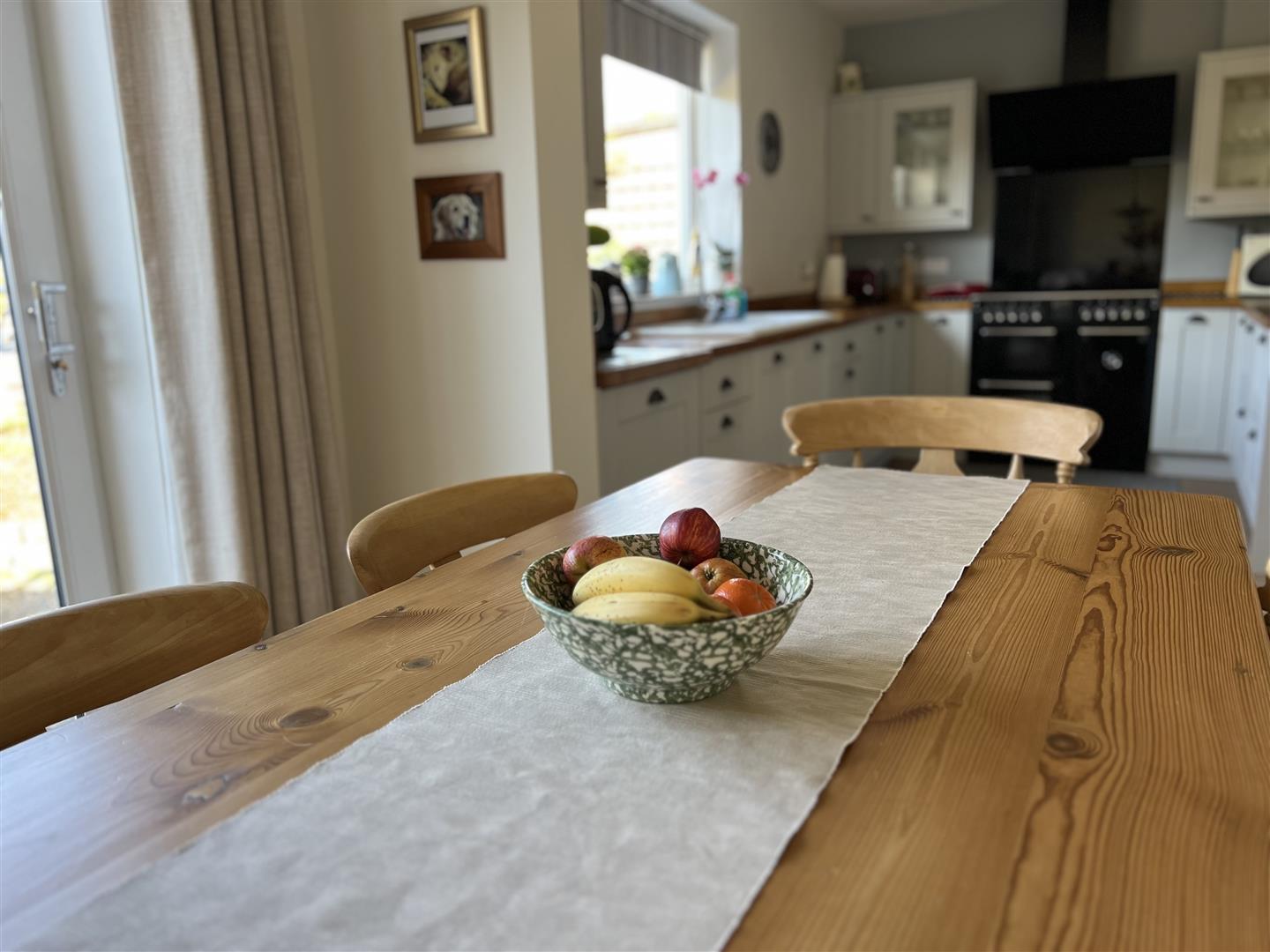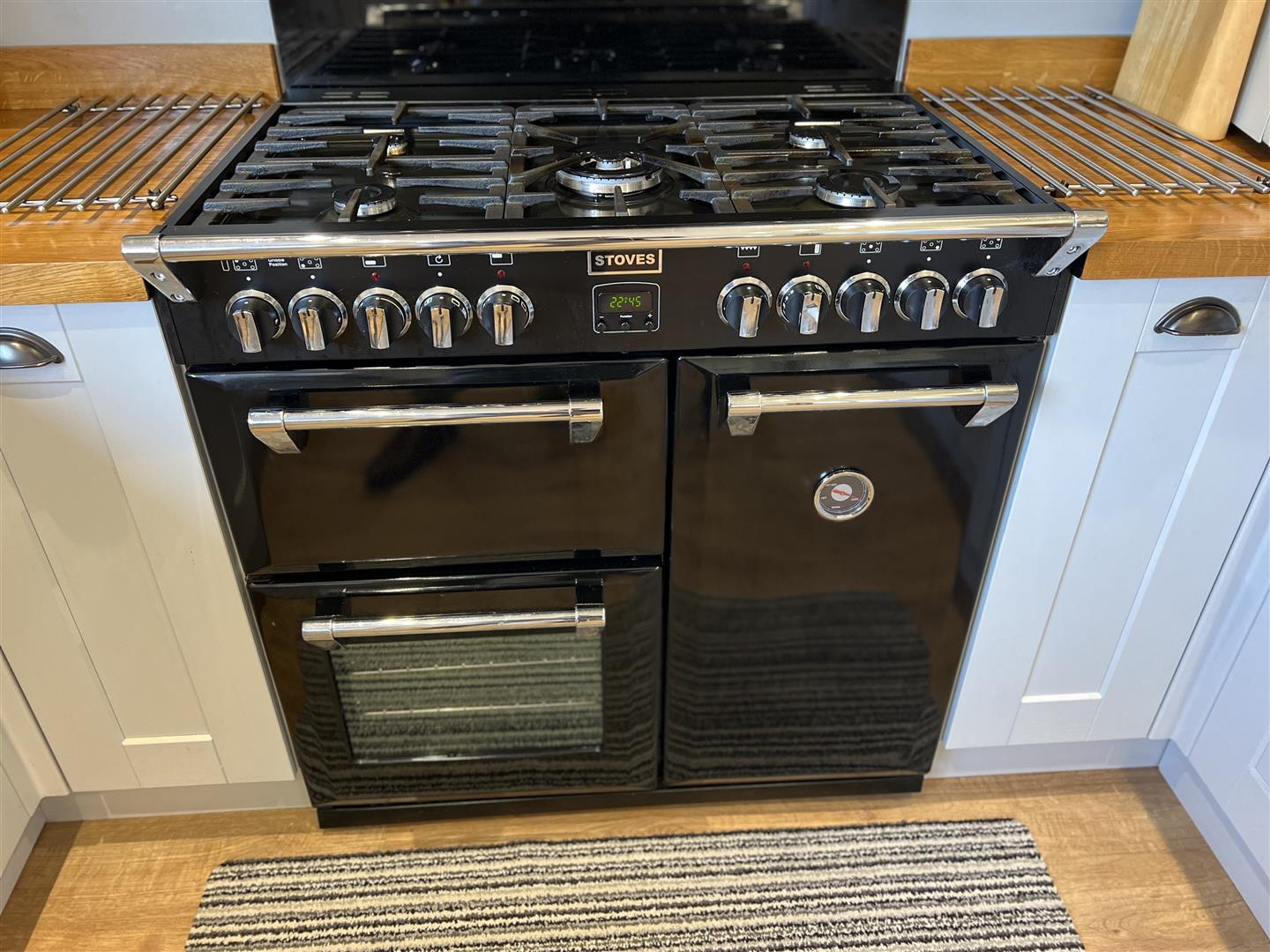 The open plan kitchen diner is of a good size and has been well planned. Fitted with an ample range of wall floor and drawer cabinets in a Dove Grey finish complemented perfectly by the warm tones of the solid oak wooden worksurfaces and upstands and ceramic sink. There is an integrated dishwasher, inset space for a fridge/freezer and the 'Stoves' range cooker is included in the sale. The room can easily accommodate a large family dining table and has window to the rear aspect and sliding patio doors opening onto the rear patio.