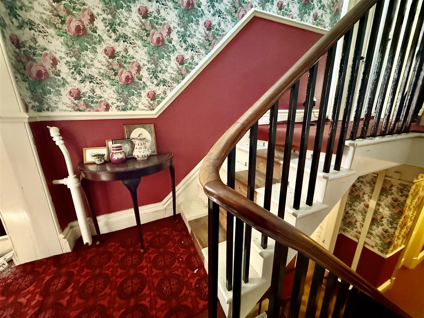 Original wooden entrance door opens into the vestibule with tiled floor and a door through to reception hallway. A stunning balustrade staircase leads up to the first floor and there is access to the lounge, dining room and kitchen.