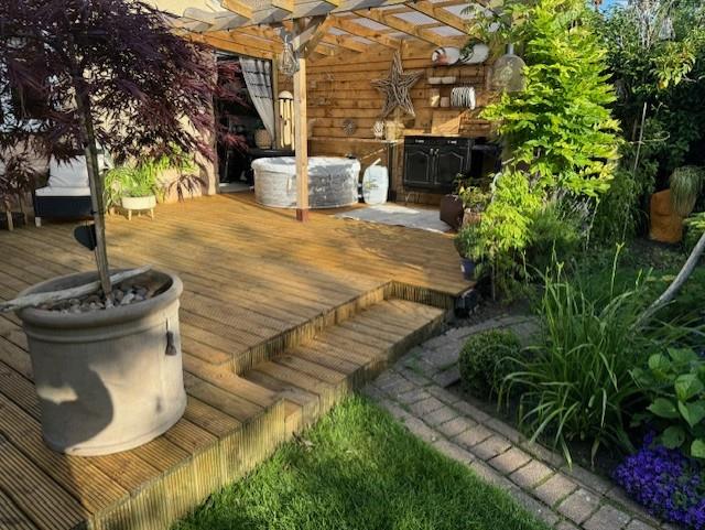 The front of the property has off road parking for up to four cars. Driveway has been block paved with wall. Garage entrance. The garden to the rear of the property is an absolute oasis of tranquillity and dream for any keen gardener. Well stocked borders with plants and shrubs, mirrors, decking and even a pond. These vendors have clearly shown the property inside and out a huge amount of care and attention. Which oozes from this stunning home.