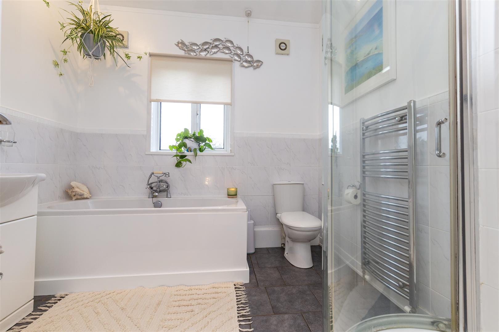 To the first floor you will find three very large bedrooms, the fourth bedroom currently used as an office. Family bathroom with white suite, bath, sink with vanity unit, corner shower with enclosure.