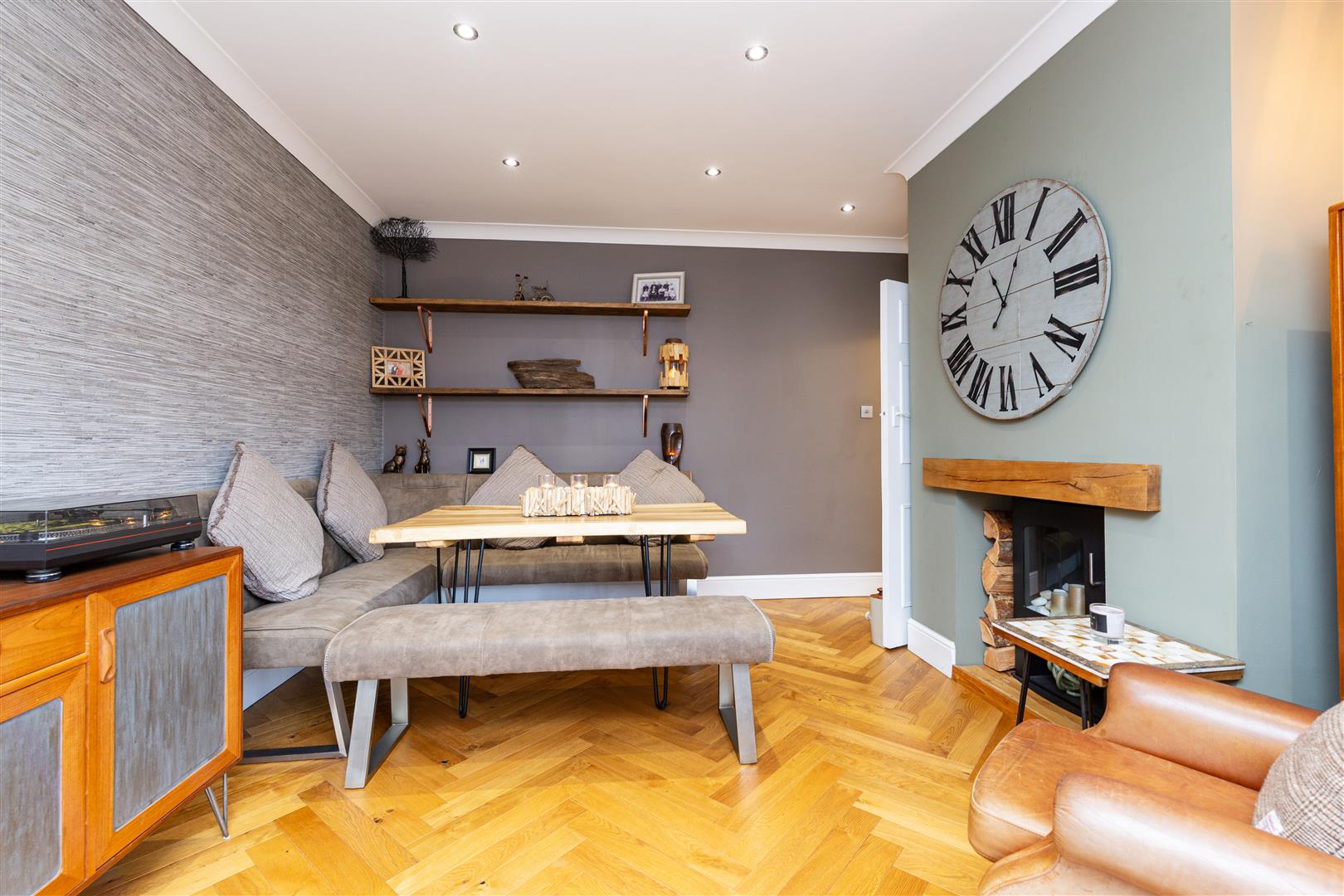 A real one off! This property has been lovingly refurbished throughout offering large rooms all stylishly decorated with a homely feel throughout. The ground floor offers two large reception rooms with the lounge to the front of the property with log burner and chimney breast to centre. Luxurious oak wooden floor from the the entrance of the property into the dining room. Dining room with chimney breast and large windows with door overlooking the rear garden. Kitchen with a good selection of wall and base units with integrated oven, hob and dishwasher. Door to WC and garage/workshop.
