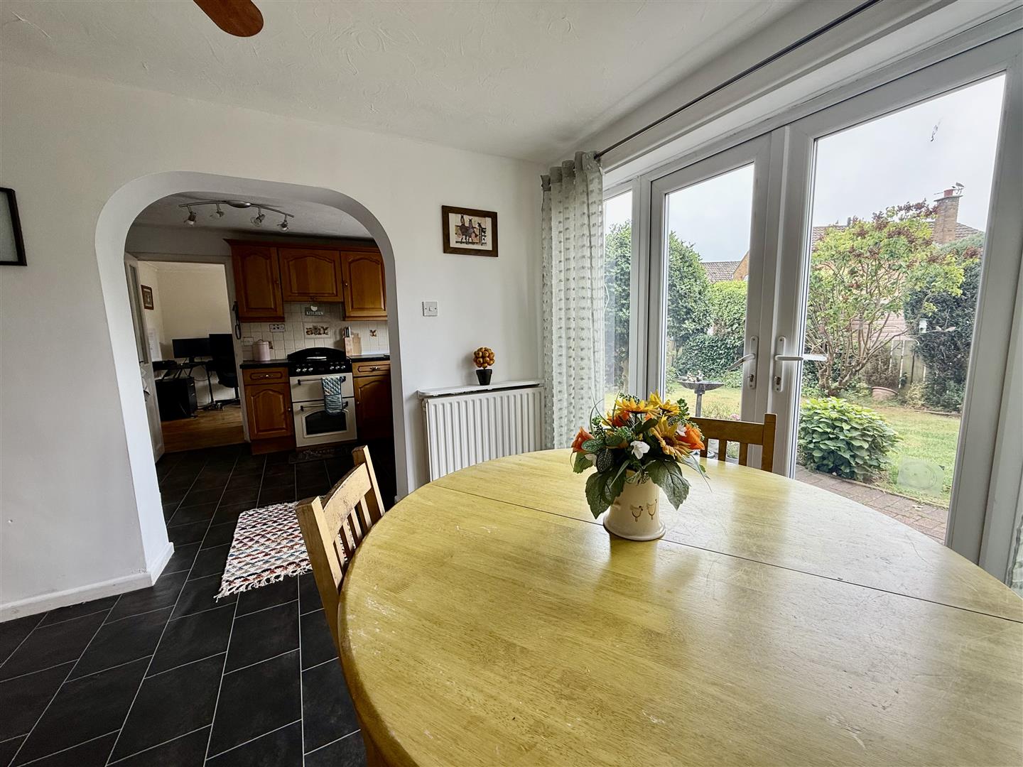 The lounge is of a good size and has internal doors to the dining area ,which in turn has sliding doors opening out into the south facing garden. To the first floor there are three bedrooms, the bathroom comprises of a white suite.