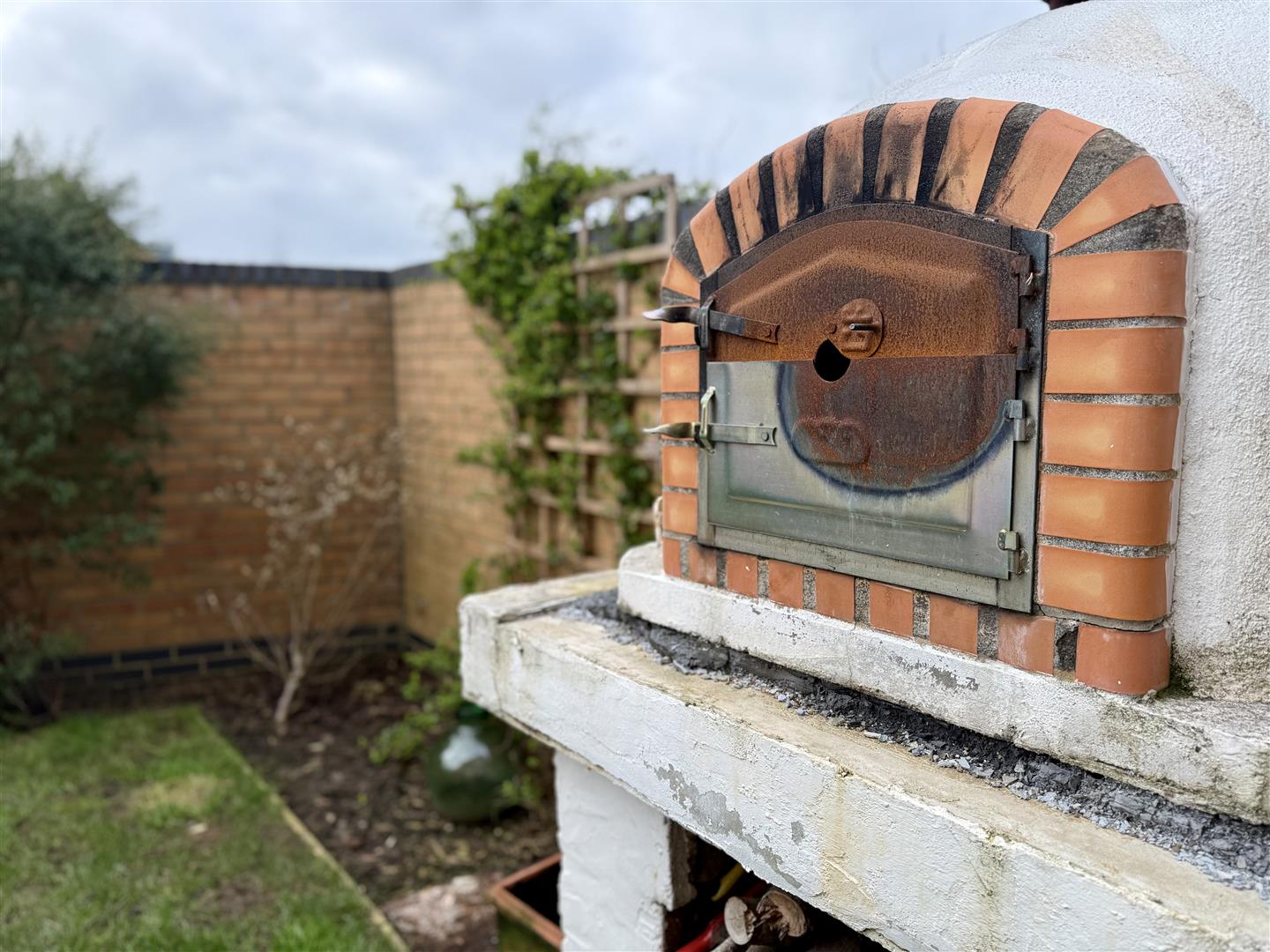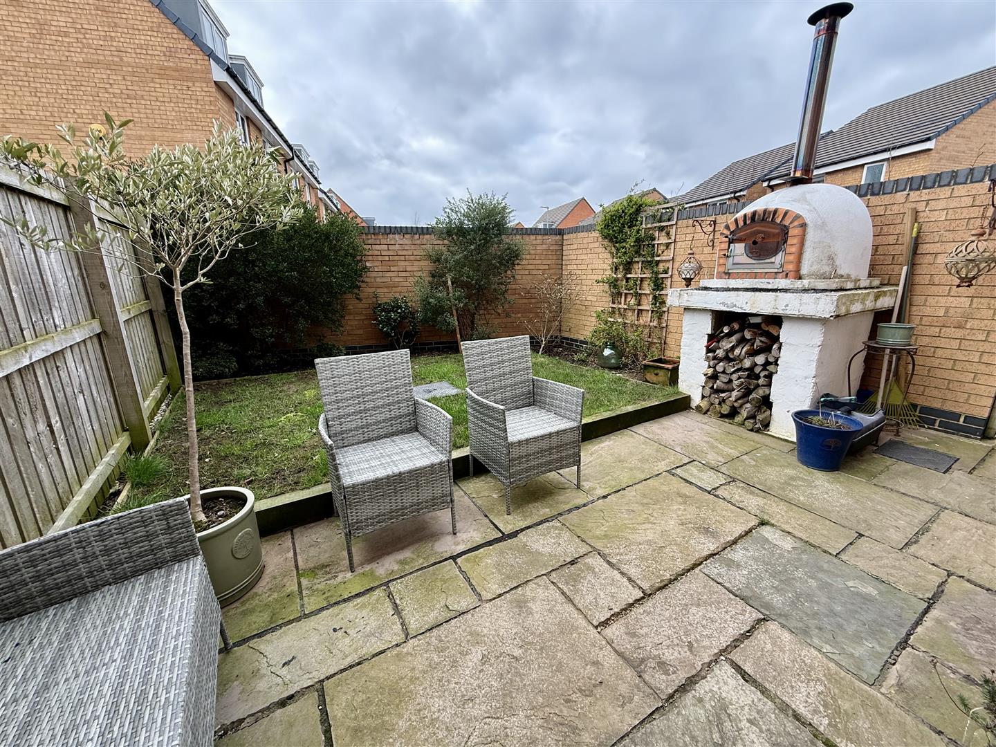 The front of the property is open plan and has a paved driveway for off street parking for two vehicles with one electric vehicle charging point. There is a single access gate to the side leading to the rear garden which has a lawn and paved patio seating area. There is also a pizza oven in position and a convenient water tap.