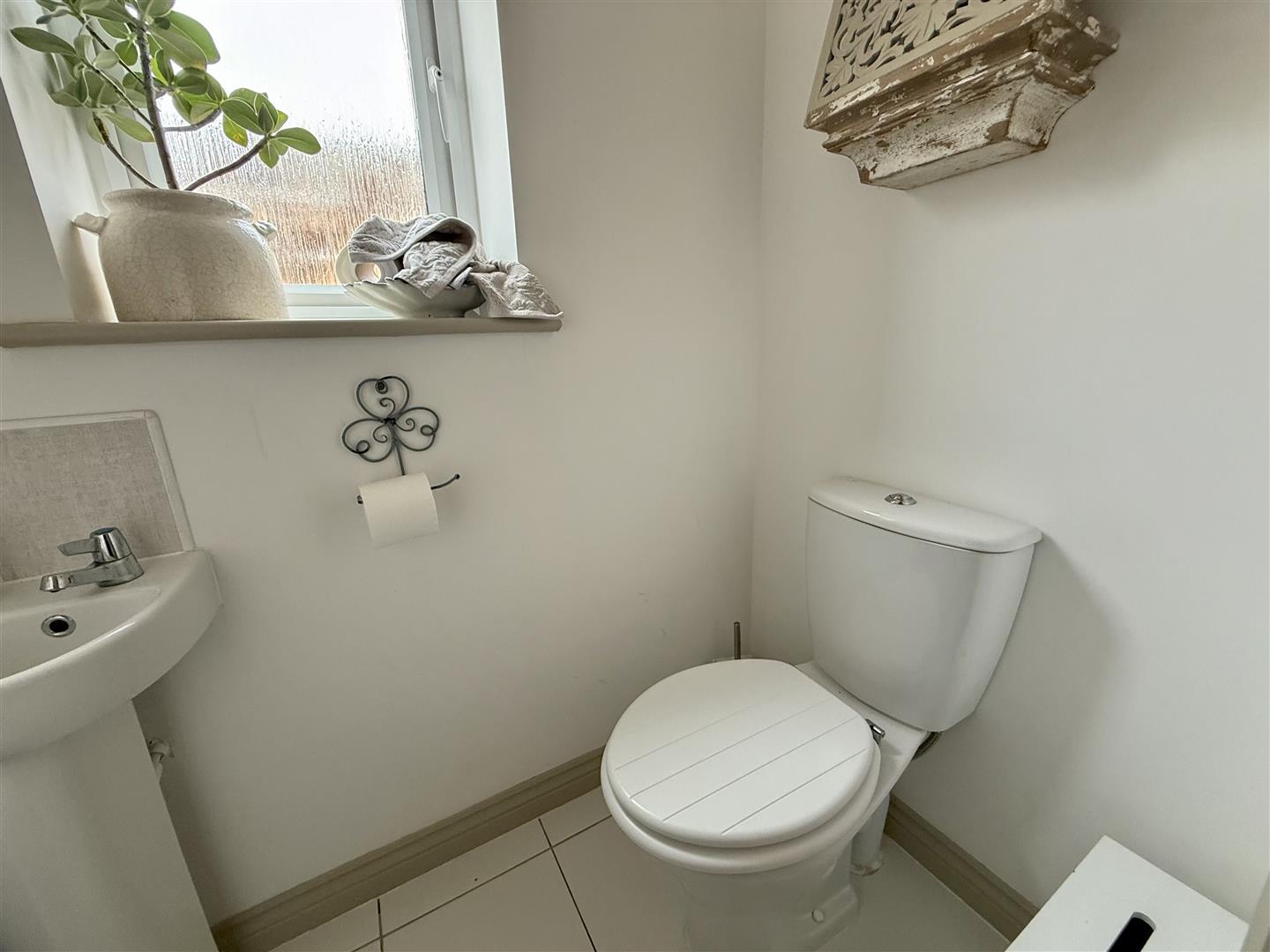 The tiled floor is throughout the ground floor. The current owners have converted the original garage space and incorporated it into a stunning open plan kitchen and dining room, dual aspect and flooded with light this generous social space is at the heart of the home. A convenient ground floor cloaks/WC completes the accommodation to this floor with a staircase leading to the first floor.