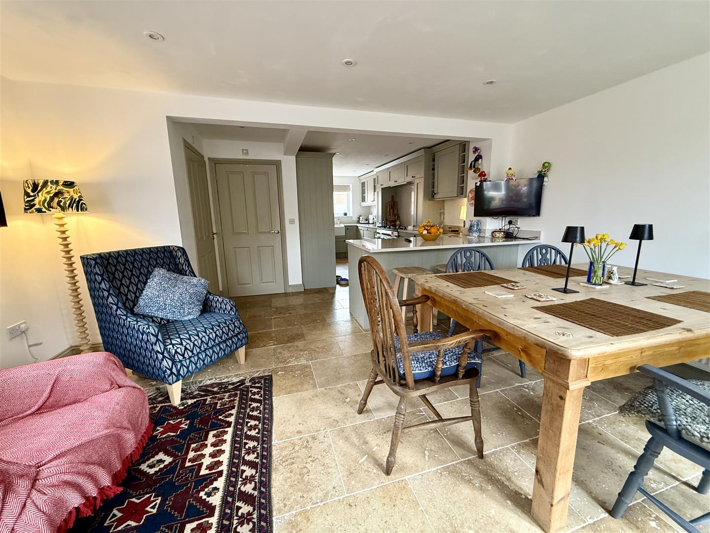 Using the original garage space has allowed for a super open plan kitchen and dining space. The kitchen has been well planned and comprises of a quality range of cabinets in a soft green sage complemented by stunning quartz worksurfaces with butler sink. The integrated appliances include a washing machine and dishwasher and the kitchen area has a window to the front aspect and is open plan to the dining and sitting room.