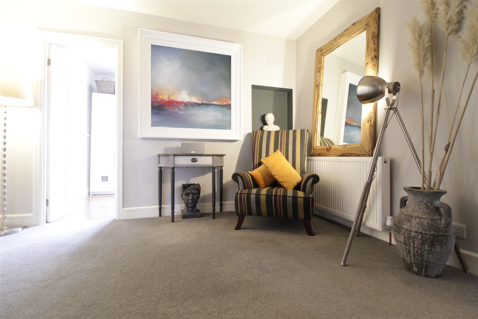 A functioning area in its own right. The landing area is sizeable, and had been staged with a soft chair, it would make for a pleasant reading area, or office space if required. Leading to all of the four bedrooms and the house bathroom/WC.