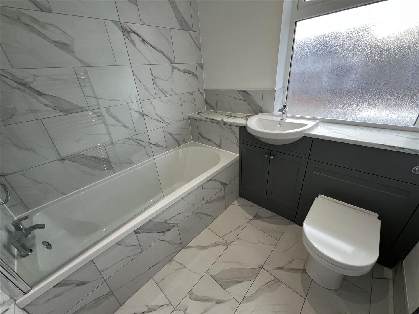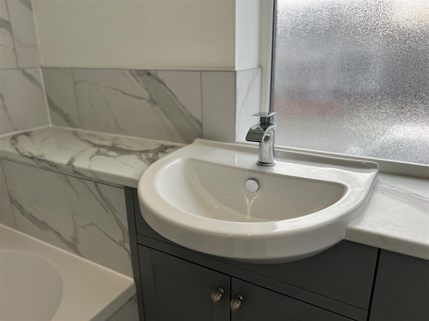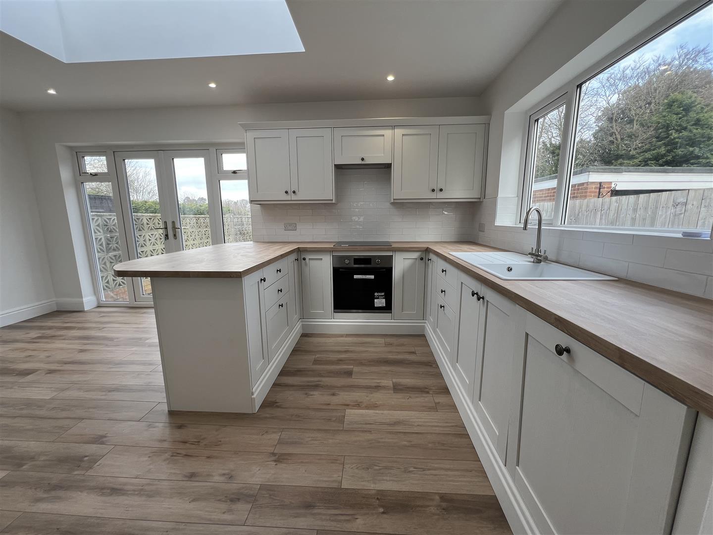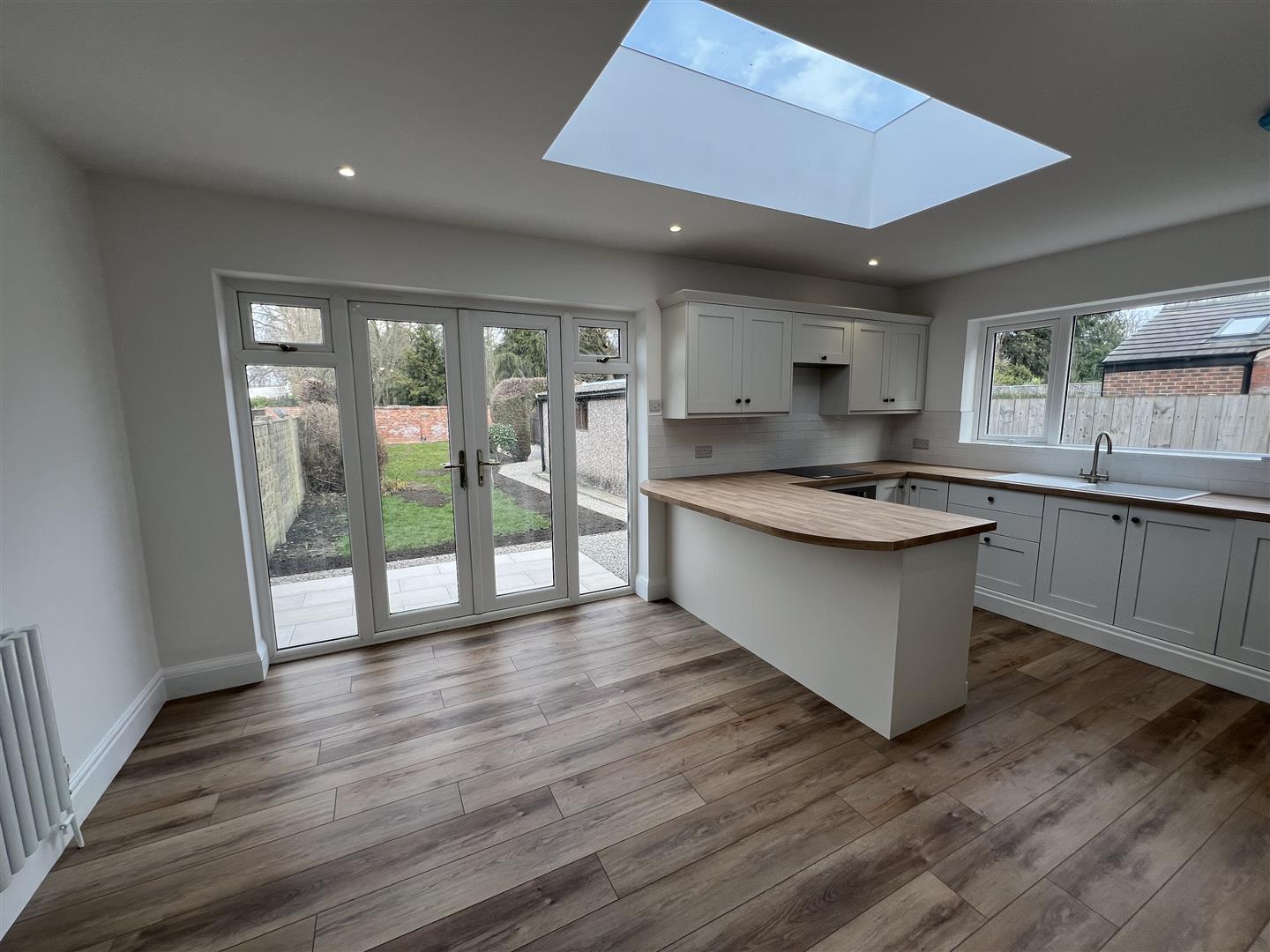 The accommodation is light and bright, with clean lines and full re-plastering and decorating. Benefitting from a large Lounge/Dining Space flowing into the Kitchen/Diner extension. The Kitchen/Diner is situated to the rear and has double French doors leading out onto the porcelain patio area. There is also a useful re-fitted Ground Floor WC just off the Hallway.