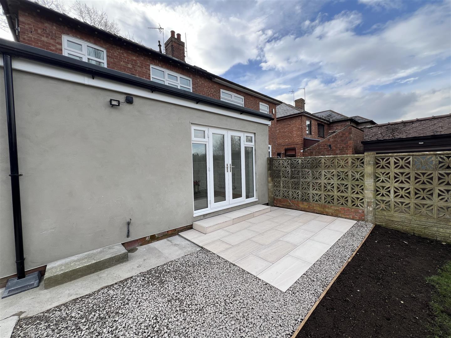 Externally, the property has gardens to the front and rear. The front offers off-street parking and is enclosed by a small brick wall. The rear garden is an extremely good size and mainly laid to lawn, enclosed by a brick wall to the rear and new fencing either side. The garden has the advantage of not being looked over at the rear and has a detached Garage. There is a new porcelain patio area just out of the French doors, with a second patio area at the bottom of the garden.