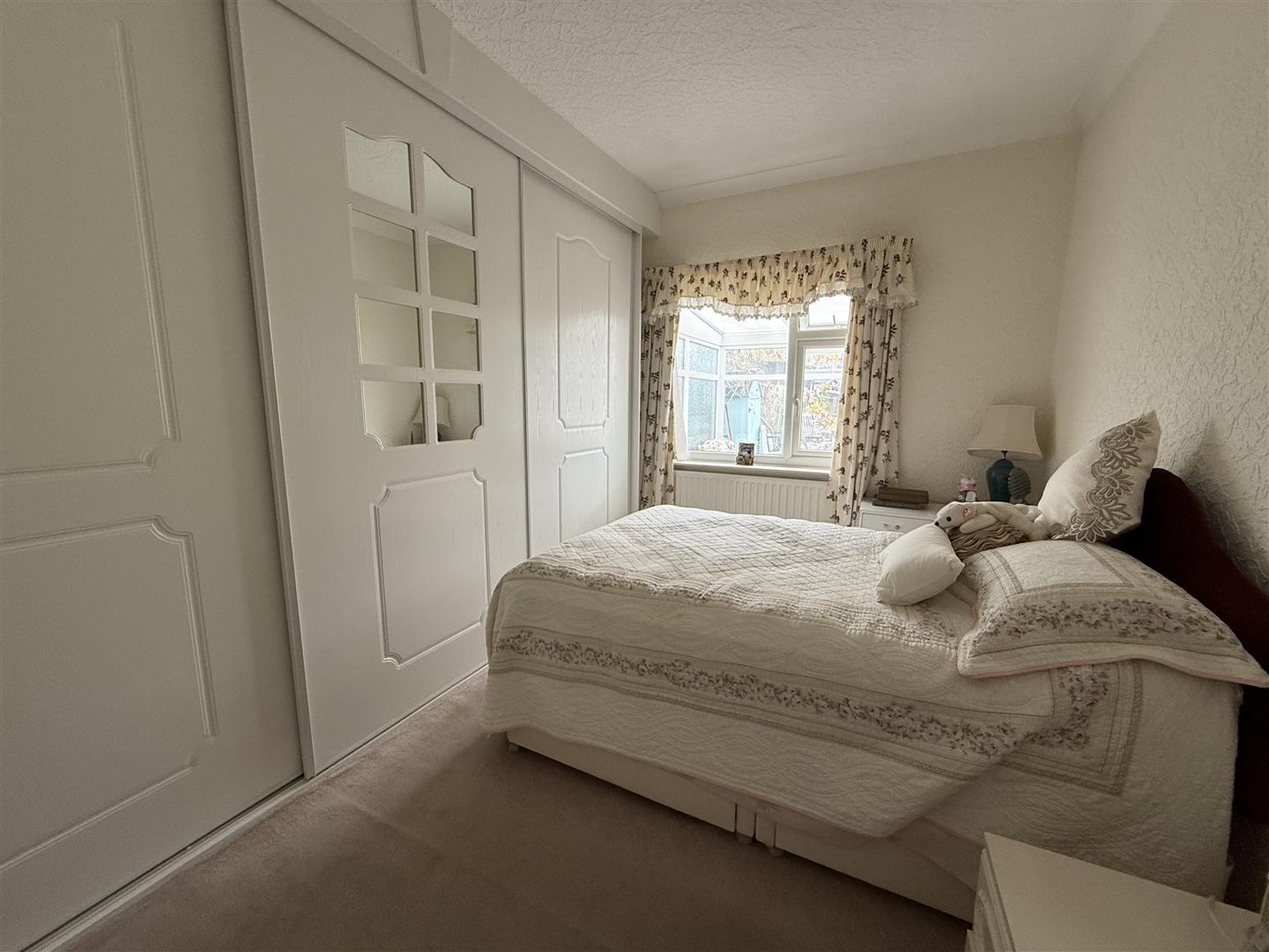A generous double bedroom with fitted wardrobes to one wall and a window to the conservatory.