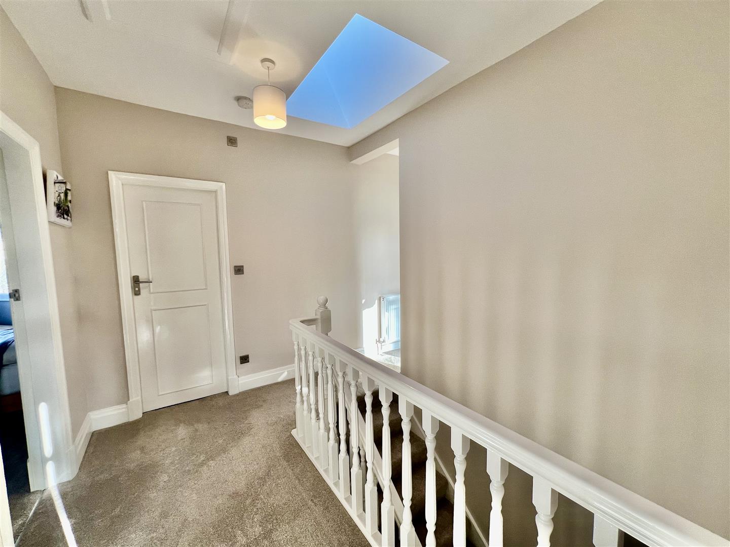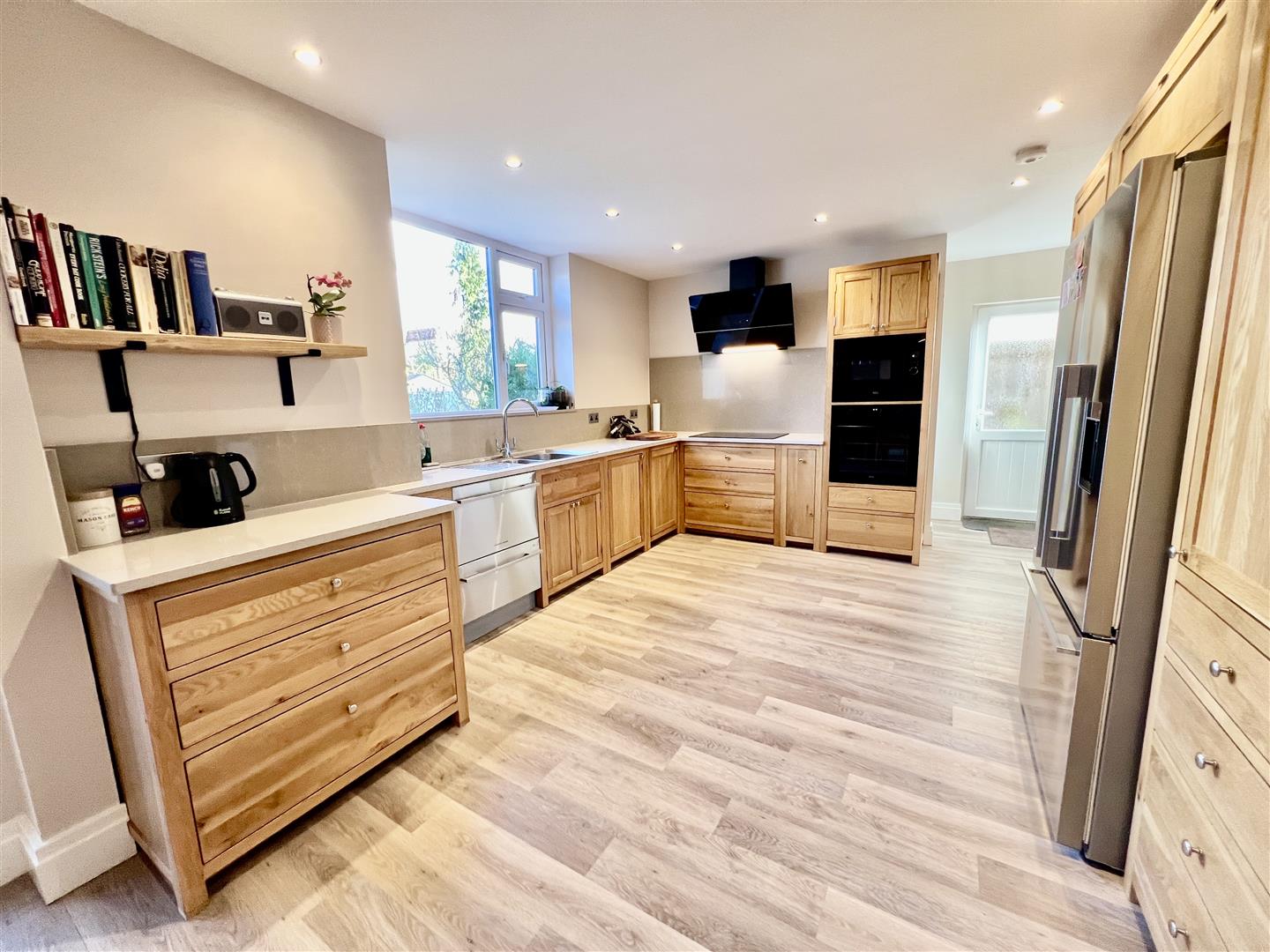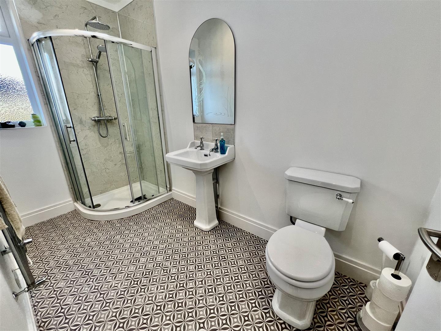 The ground floor also features a separate front lounge, providing a cosy retreat, along with a convenient WC. Upstairs, four well-proportioned bedrooms are complemented by a stylish family bathroom and a separate shower room. A standout feature is Bedroom Three, which benefits from sliding doors opening onto a private balcony offering stunning views over the park.