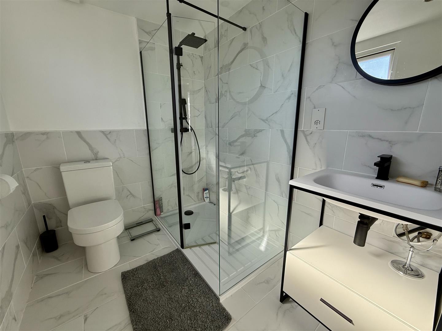 Fitted with a modern suite to include shower cubicle with mains fed monochrome shower, pedestal handbasin and WC.