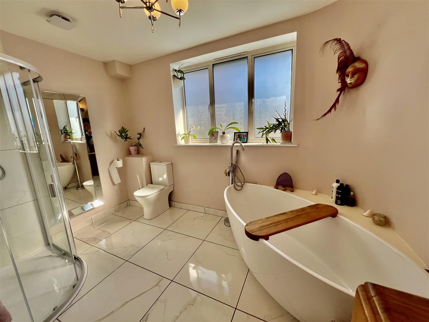 The ground floor also features a separate front lounge, providing a cosy retreat, along with a convenient WC and separate utility room. Upstairs, four well-proportioned bedrooms are complemented by a stylish family bathroom and a separate en suite shower room. A standout feature is the second floor master suite with en suite and sliding doors opening onto a private balcony offering stunning views over the park.