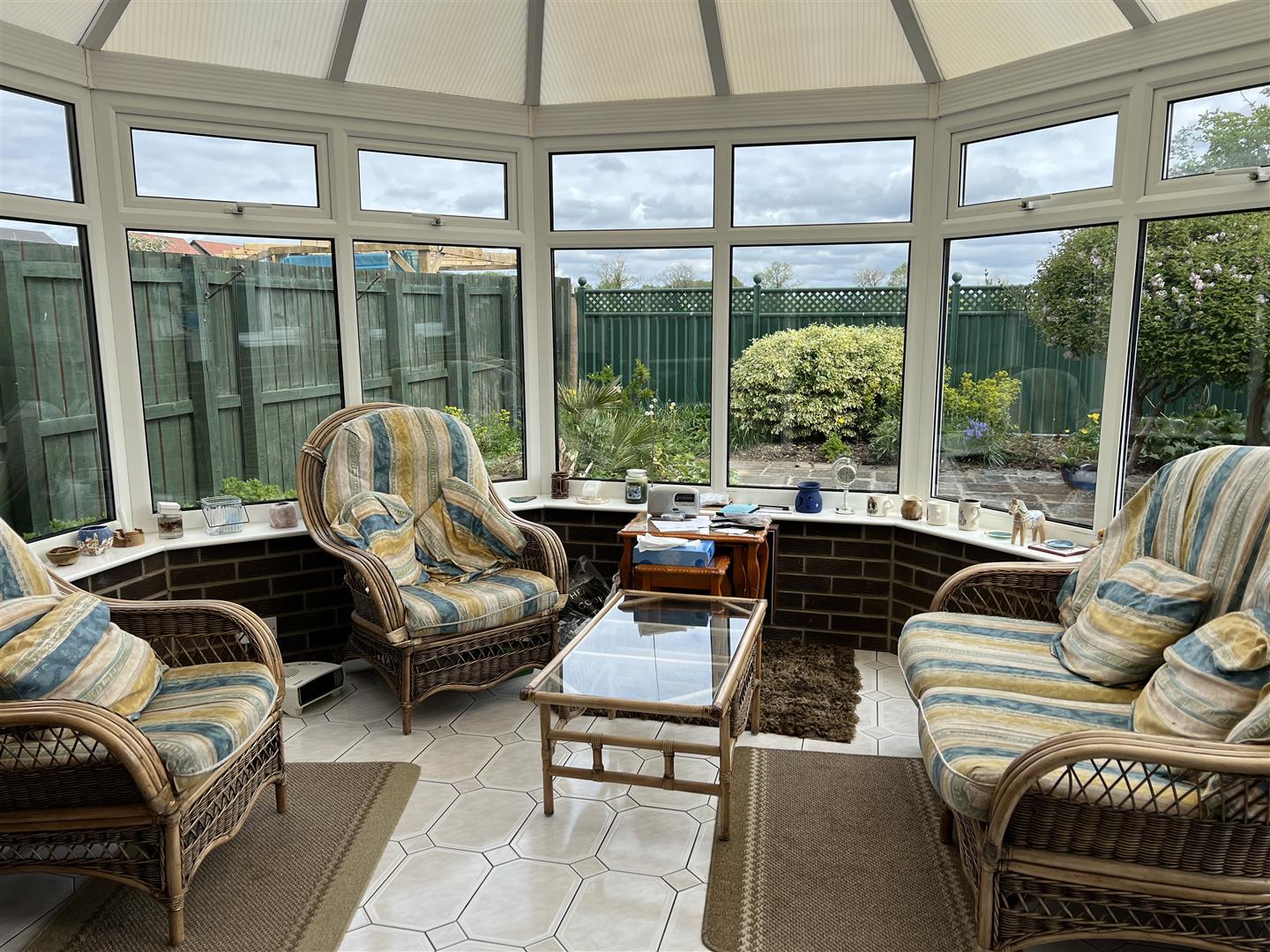 The home welcomes you with a spacious entrance hallway and cloakroom/WC, leading through to a front-facing dining room that overlooks the attractive green. The generously sized lounge enjoys a dual aspect, filling the room with natural light and flowing seamlessly into the conservatory a tranquil space to relax while enjoying views of the rear garden.