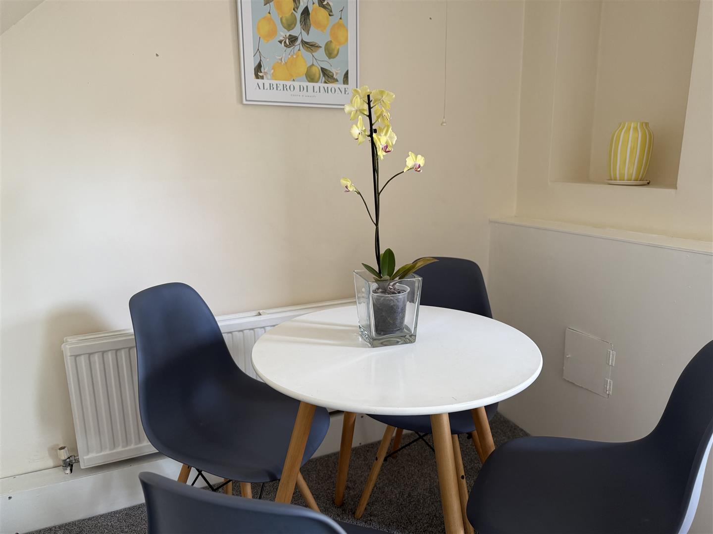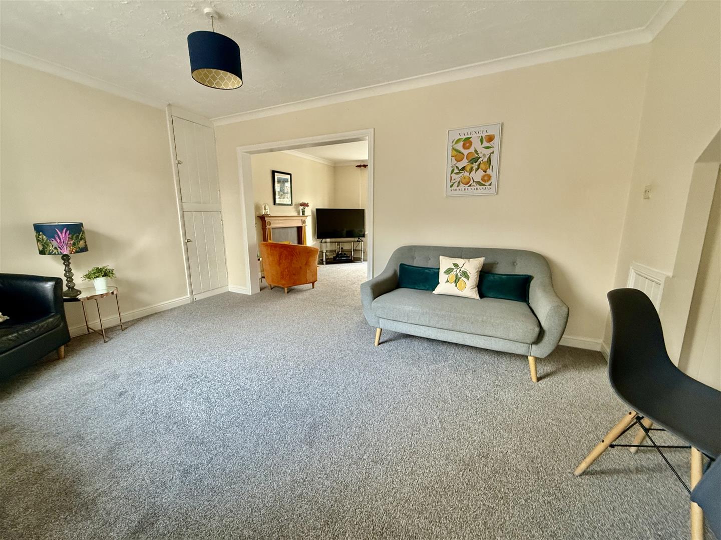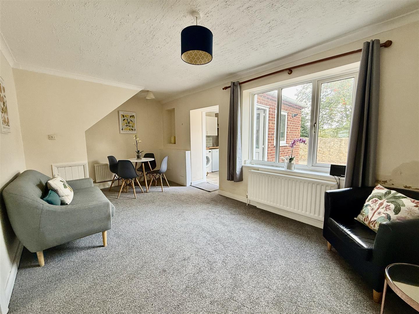 A well proportioned room, over looking the rear aspect and which can easily accommodate a large family dining table along with further soft seating. There is an original built in cupboard to the alcove and access to the kitchen.