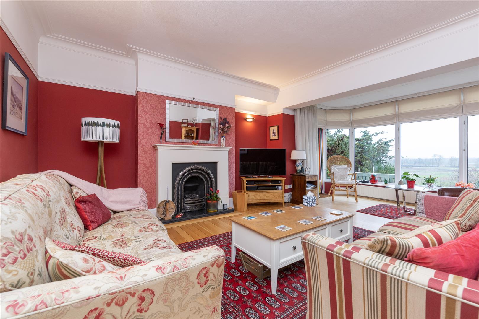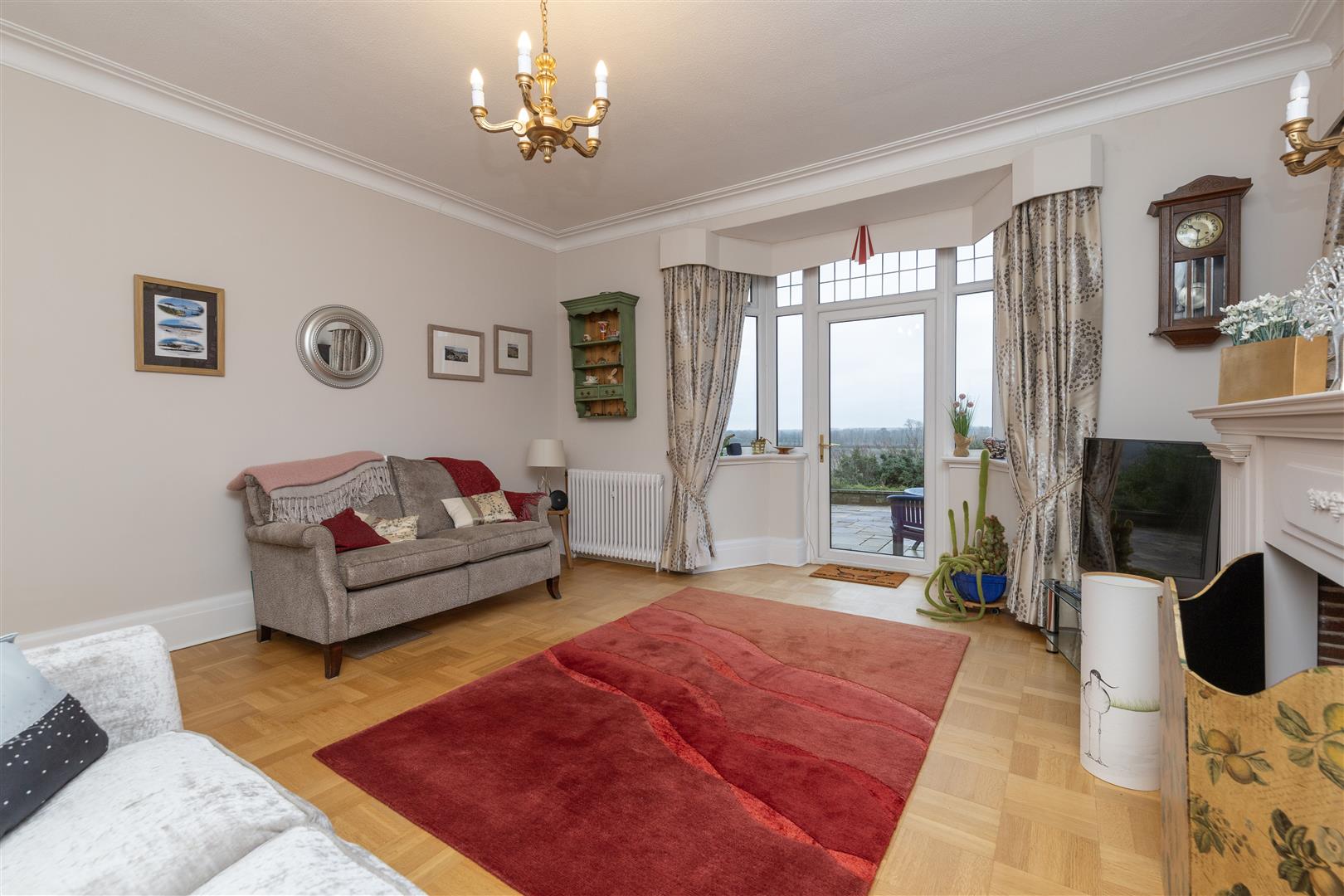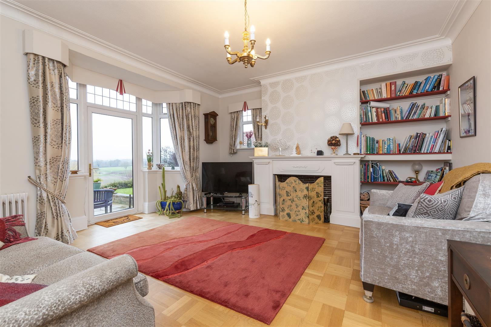 Initially constructed in 1929, the property offers well-planned accommodation throughout. Internally, a welcoming hallway leads to a selection of generously sized reception rooms. The main living room features an open fireplace, with windows framing the garden and rural outlook beyond. A separate dining room and an additional lounge provide flexible space suited to a range of buyers.