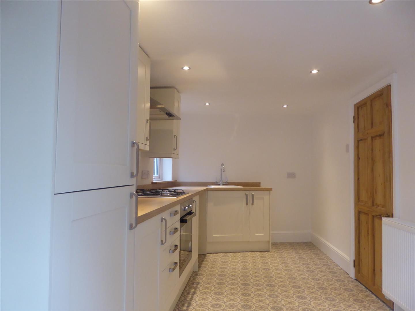 Double glazed window to the rear and double glazed french doors to the side aspect, refitted with a quality range of Magnet cream matt wall, floor and drawer cabinets with butchers block effect work surfaces and coordinated uplifts, sink unit, stainless steel extractor, stainless steel splash back, stainless steel gas hob, electric oven, cupboard housing the wall mounted gas central heating boiler , plumbing for an automatic washing machine, understairs storage cupboard with original stripped door, vinyl flooring, spotlights to the ceiling and the original stripped door.