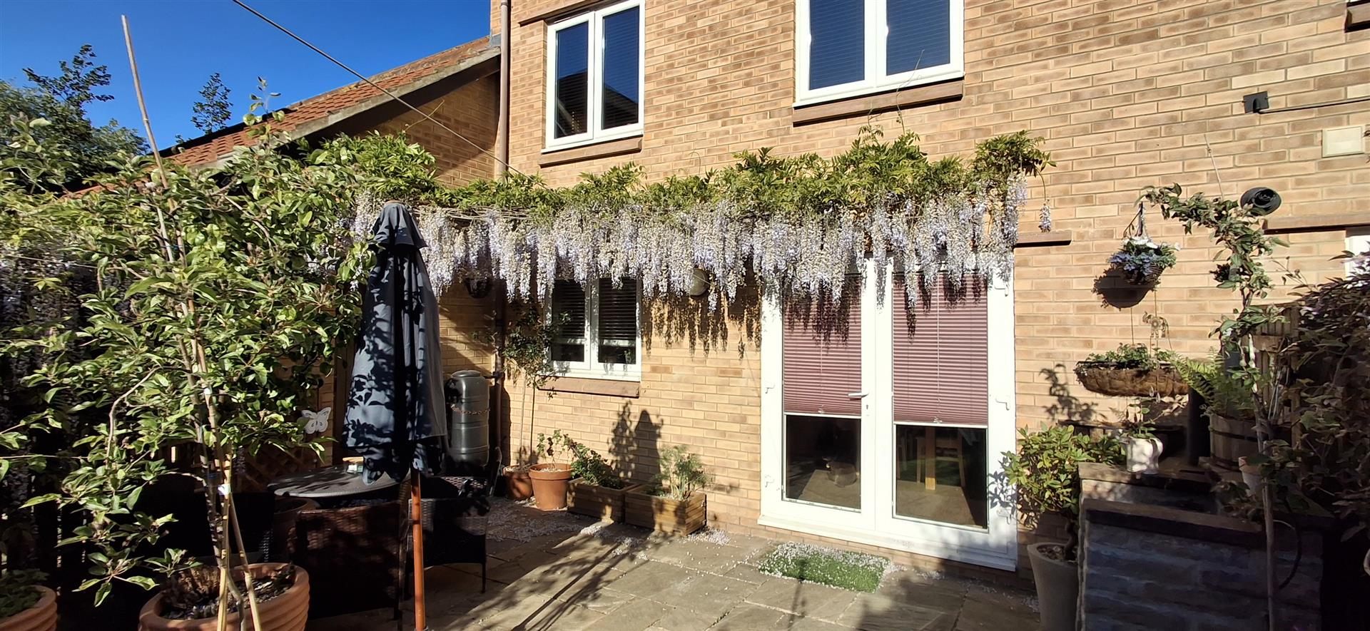 Externally, there is a small front garden with hedging and the rear garden is enclosed by fencing with patio seating area and lawn area. There is also a secure driveway as well as the single detached garage which has up and over door.