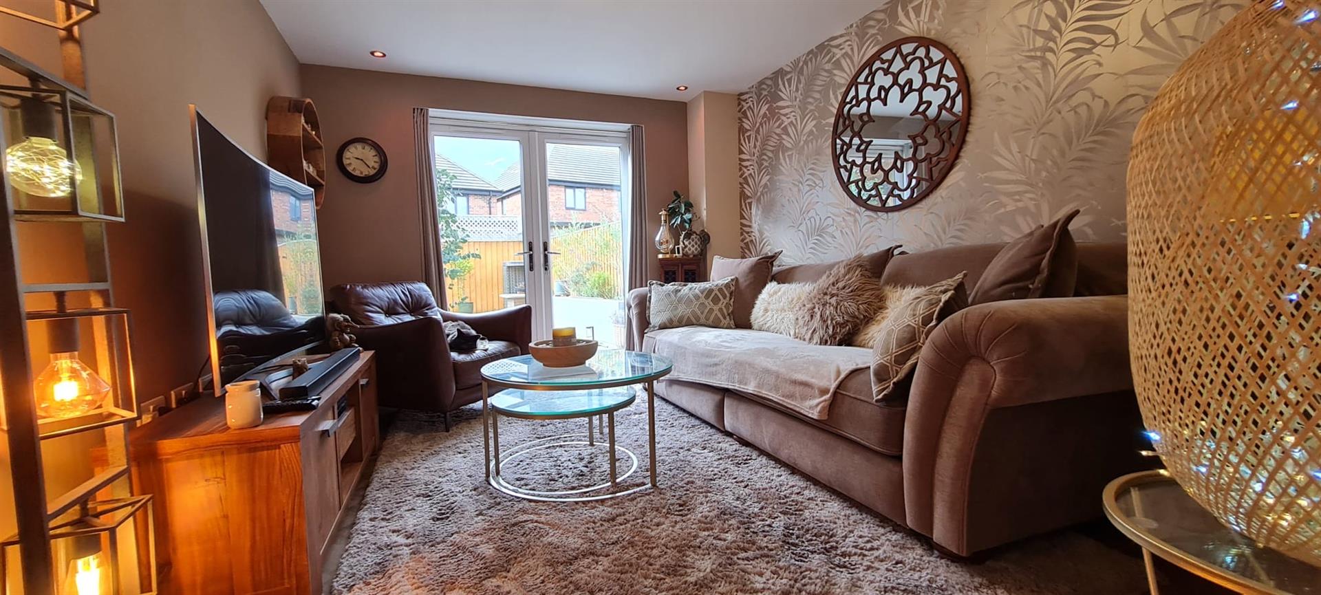 A sizeable reception room which is tastefully decorated and having a practical and stylish LVT floor. There are French doors opening onto the rear patio.