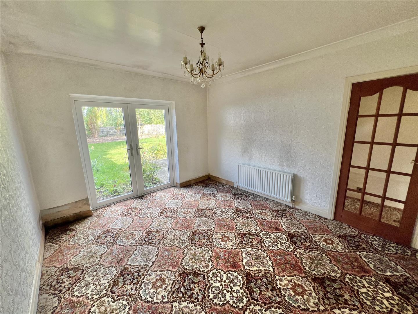 To the rear, the bungalow boasts a superb 100ft garden, mainly laid to lawn with mature trees, providing a fantastic outdoor space with excellent privacy. Internally, the accommodation includes an entrance hallway, a lounge to the front, a ground floor bedroom, a family bathroom with bath and handbasin, and a separate WC. To the rear, there is a spacious kitchen and a generous dining room, with double doors giving access to the garden. To the first floor there are two additional bedrooms, offering flexible living arrangements.