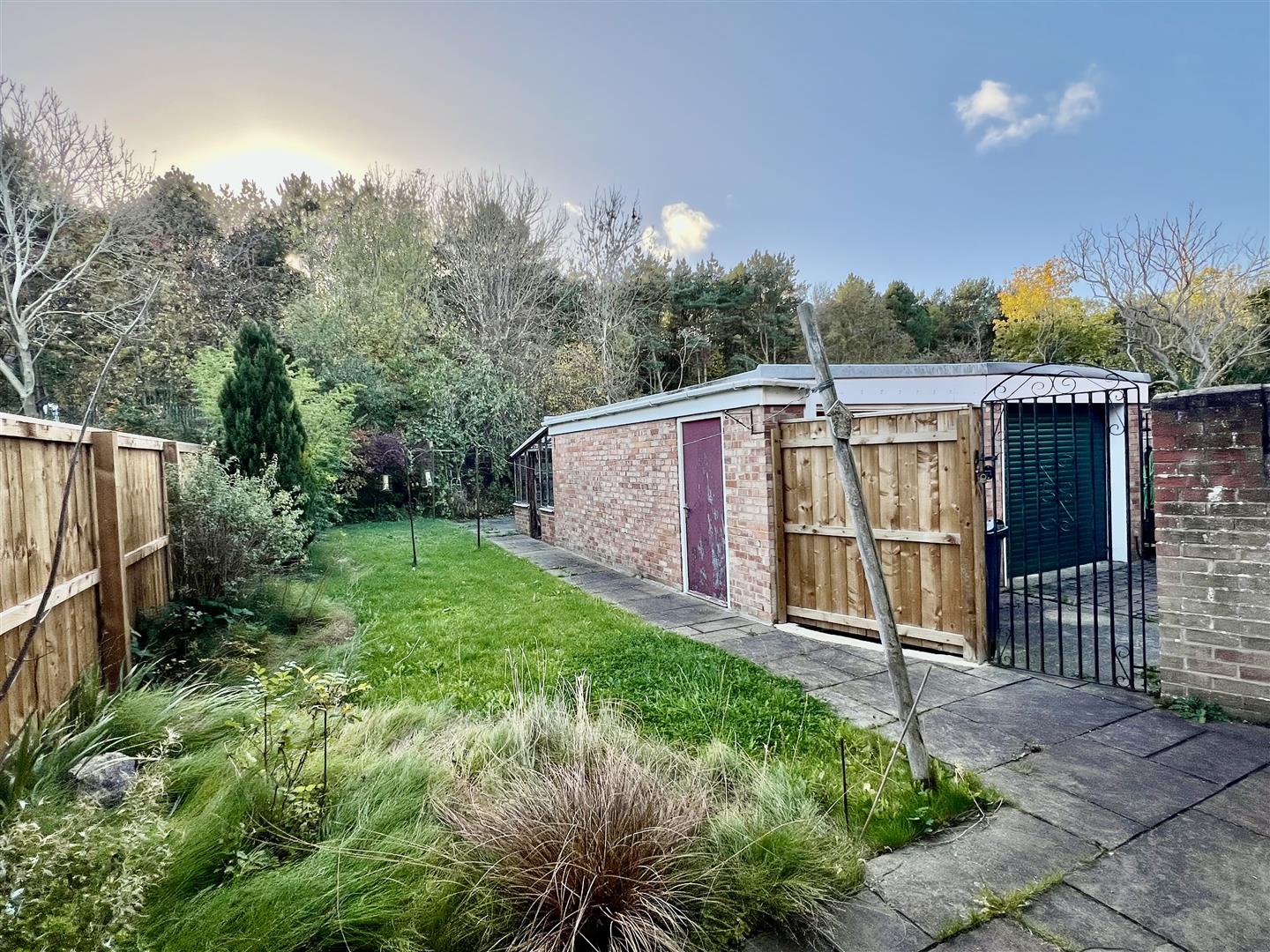 The front of the property is enclosed by a brick wall and is easy maintained being paved. A driveway provides space for off street parking. The shared driveway leads down to a single garage which measures (5.97m x 2.94m) and has an up and over door, light and power. The rear garden has the advantage of not being overlooked and is mainly laid to lawn with mature trees, glazed potting shed and timber storage shed. There is also a paved patio seating area.