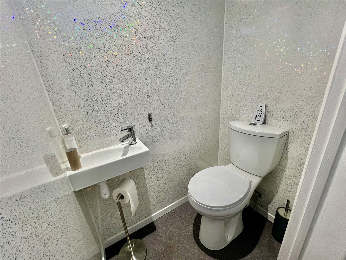 Fitted with a modern white suite with a mains fed shower and hand basin.