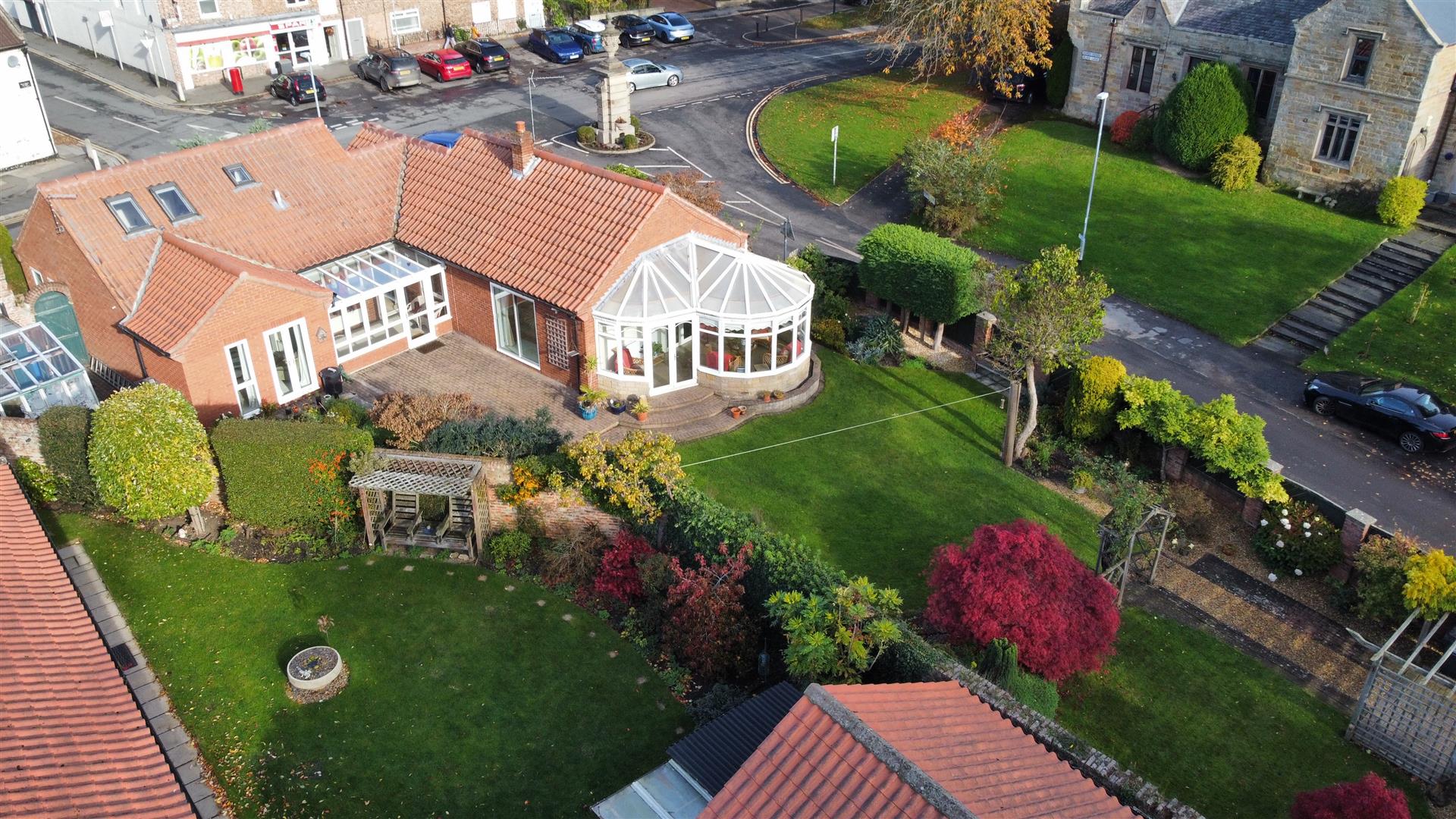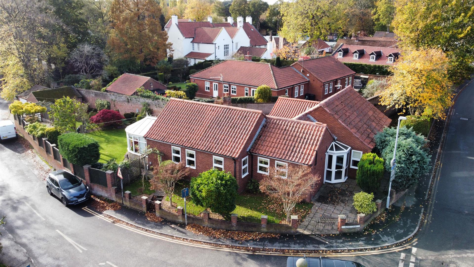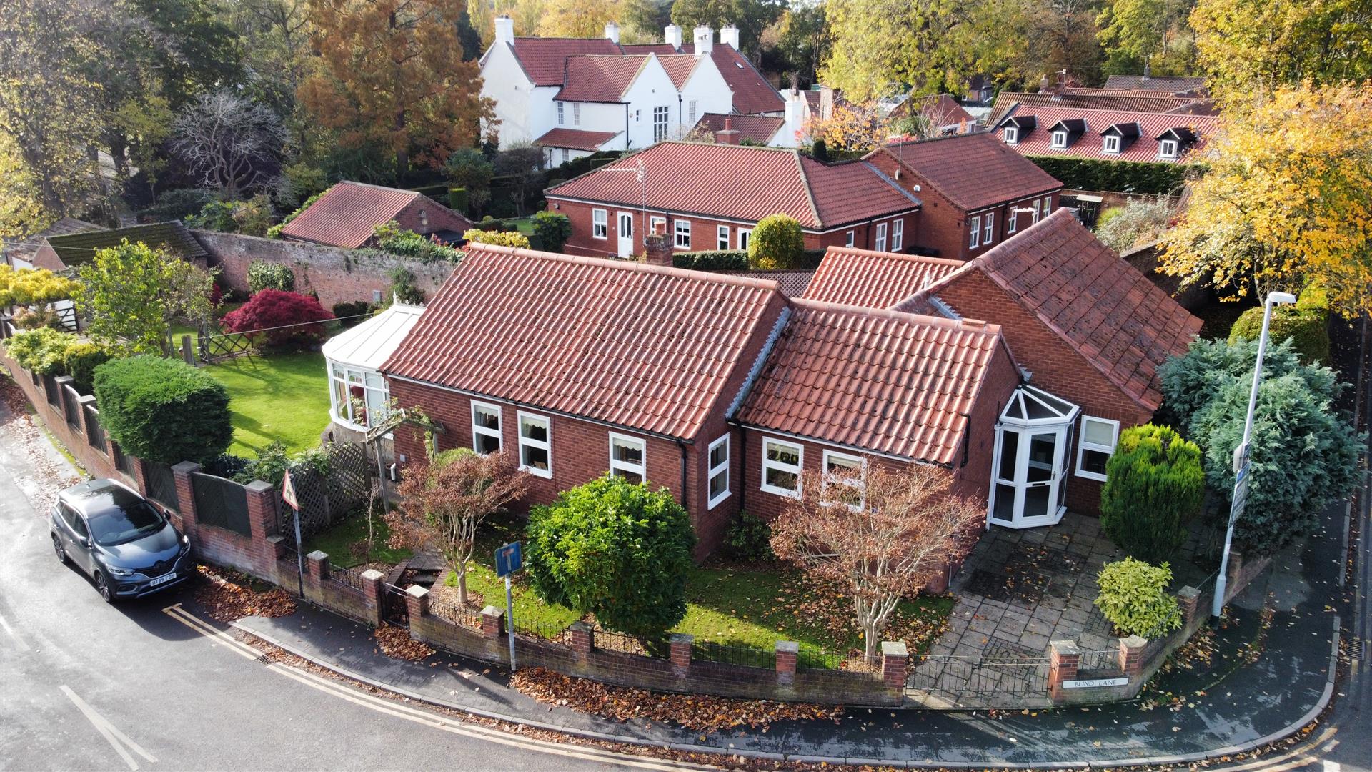 Located in the highly sought-after village of Hurworth and enjoying views of the Green, this exceptional four-bedroom detached bungalow designed and built by the current owner in 1979 occupies a generous, private corner plot offering an abundance of internal and external space. The property features an entrance porch leading to a welcoming hallway, a well-appointed kitchen with quality fitted units and space for a breakfast table, a separate dining room, a generous lounge with a feature fireplace, and a conservatory overlooking the beautifully landscaped rear garden. A utility room with garden access includes plumbing for a washing machine and dryer. The ground floor offers three bedrooms, with the master suite situated to the rear boasting French doors to the garden and a dressing area, along with a ground-floor shower room and a separate bathroom/WC. To the first floor is a spacious double bedroom with WC, hand basin, and two Velux windows ideal for guests. Externally, the property sits in a prominent village position with wraparound gardens providing privacy and charm, and to the rear, off Blind Lane, is a driveway for up to four vehicles and a detached double garage with electric roller door. This rare opportunity to purchase a substantial home in an enviable Hurworth location is sure to attract strong interest.