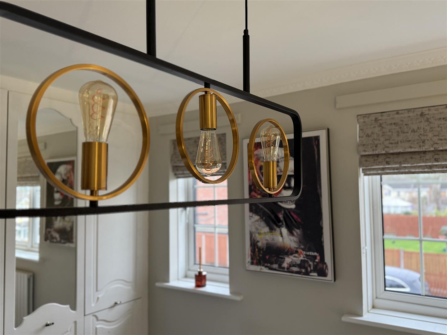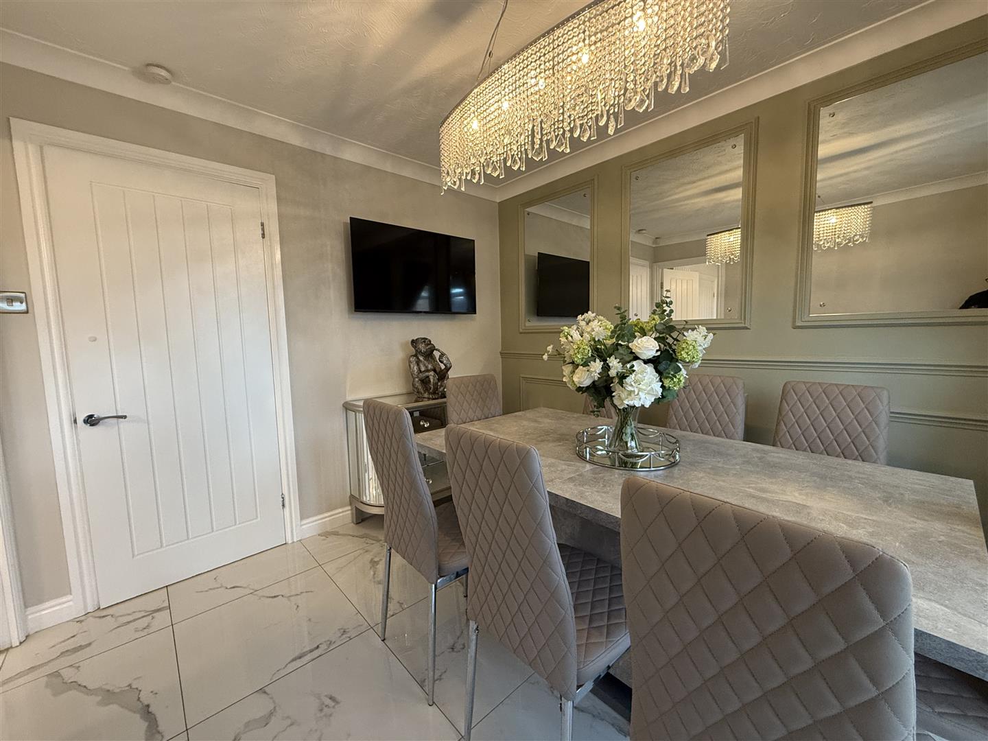 A spacious and welcoming reception room with a window to the front aspect. The focal point of the room is the media wall which allows for a large TV with electric remote control feature fireplace and has been finished with a stunning tiled finish. The room leads through to the dining room.