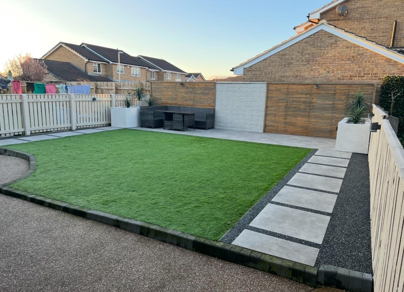 The kerb appeal of the property is immediate with an attractive resin driveway which provides off street parking for two vehicles . The remainder of the garage provides useful storage. The rear of the garden is landscaped with resin and paved pathways edging the artificial lawn, enclosed by fencing and attracts a great deal of sunshine.