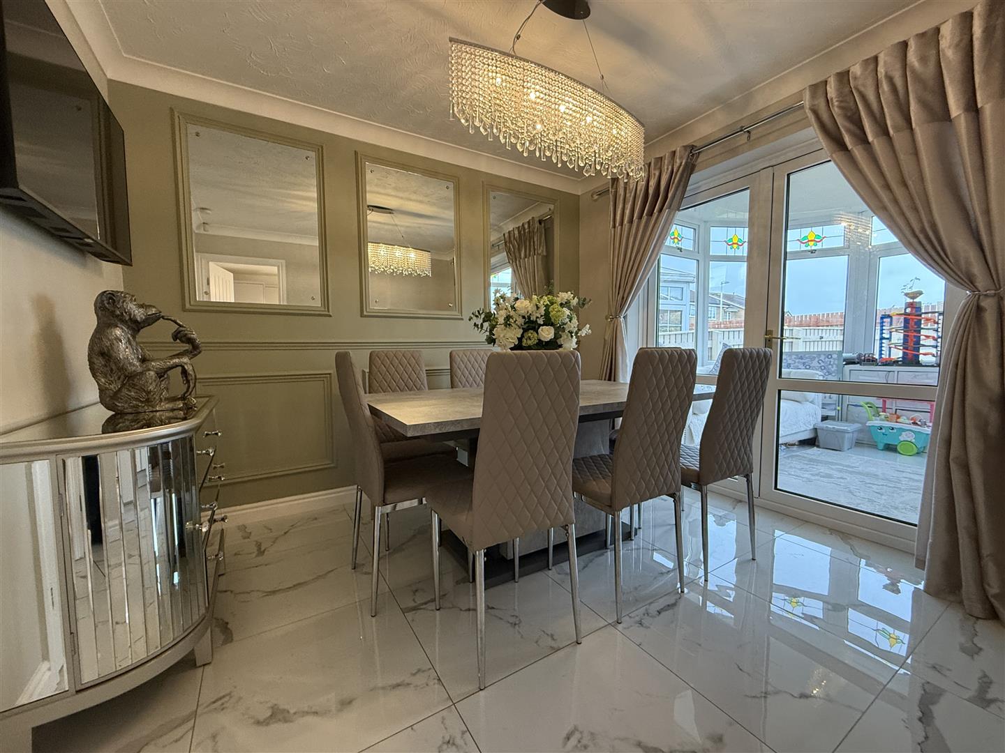 A good sized room easily accommodating a family dining table. Tastefully decorated and having doors to the conservatory and leading through to the kitchen.