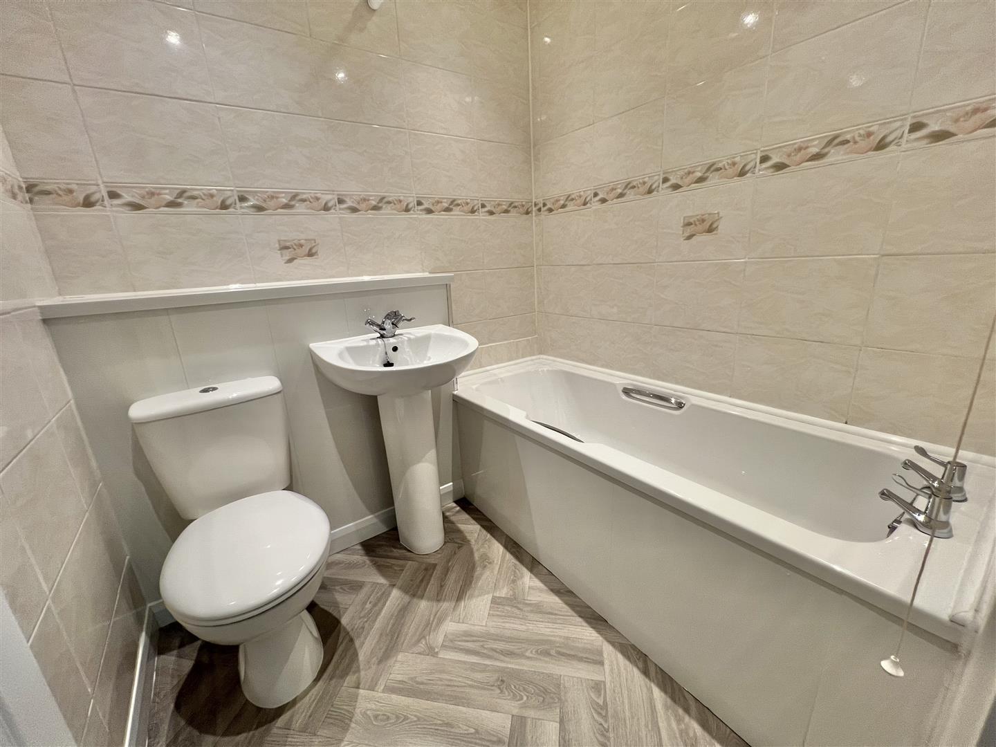 Fitted with a white suite to include: bath, over bath shower, handbasin and WC.