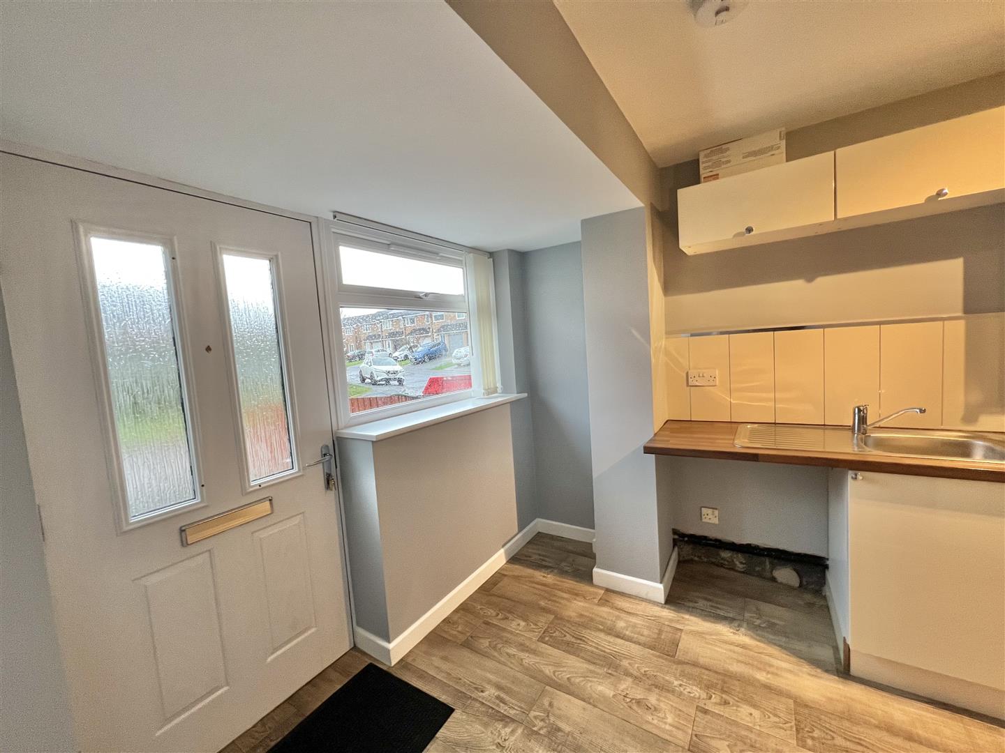 UPVC window to the front aspect and Composite door to the front, refitted with a range of cream wall, floor and drawer units with walnut effect work preparation surfaces, stainless steel sink unit, plumbing for an automatic washing machine, electric oven, electric hob. Electric Radiator