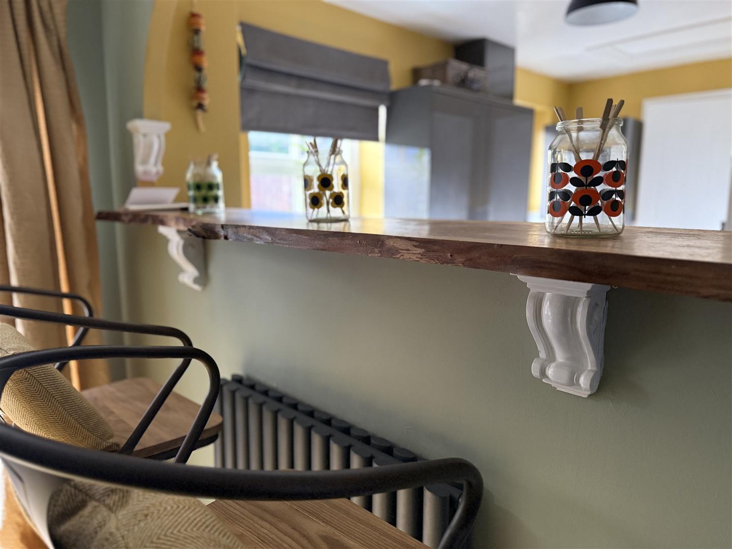 Having a lovely feature of a walk in bay window to the rear aspect the dining room can easily accommodate a family table. The wall has been opened up slightly to provide a breakfast bar for informal dining and looks through to the kitchen.