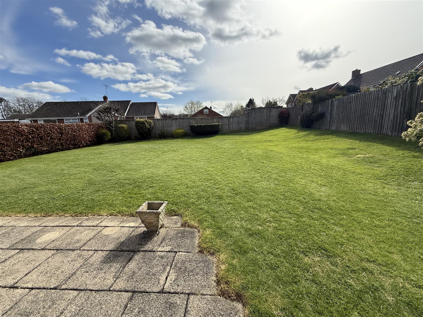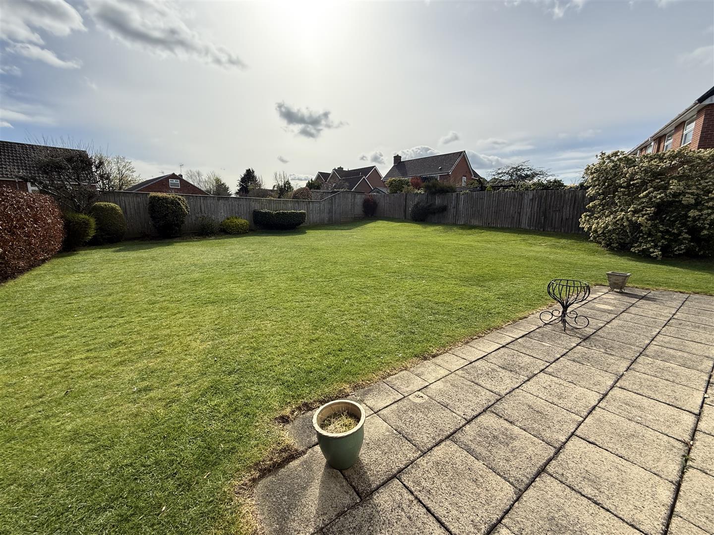 Externally the front of the property is open plan and laid to lawn with a block paved driveway for off street parking. This sits just in front of the garage (which measures 5.91m x 4.85m) and has an electric roller door, light and power and a water supply there is also a personnel door to the rear garden. The rear garden is enclosed by fencing and is mainly laid to lawn which is edged by borders. The garden catches a great deal of the summer sunshine and is quite private.