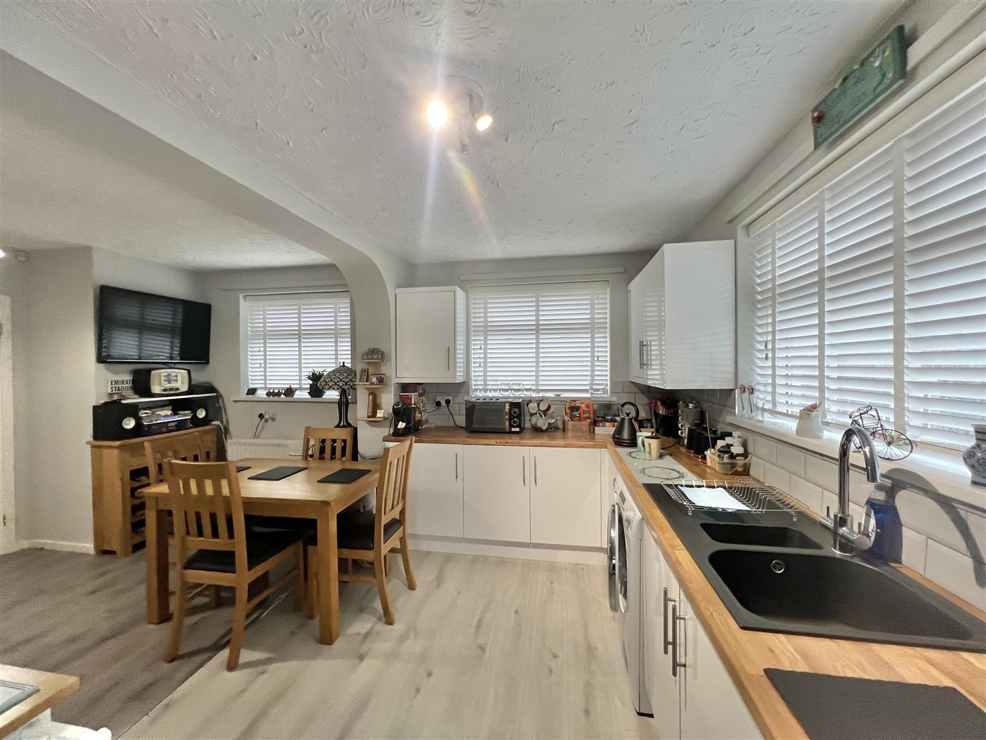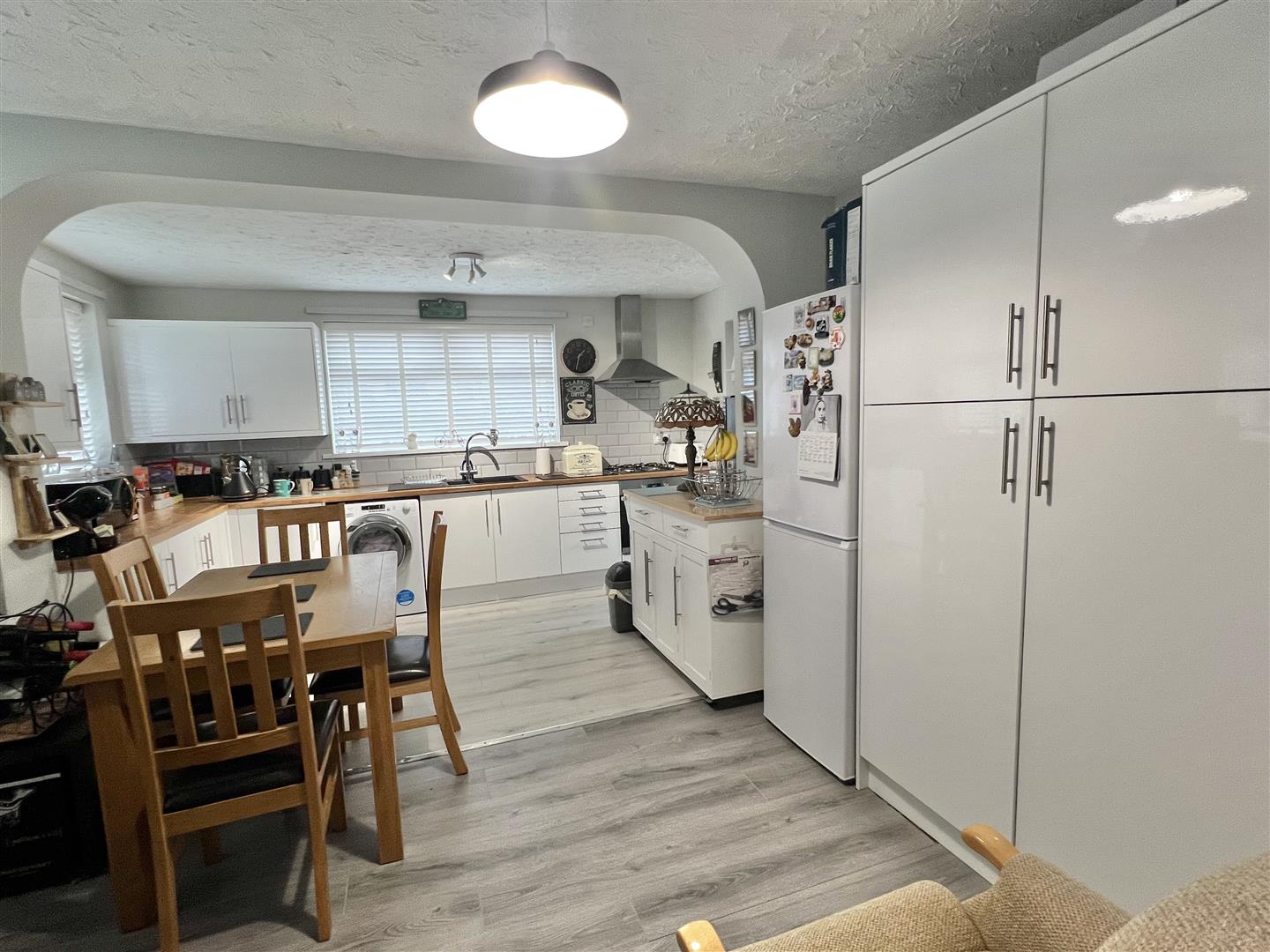 The accommodation briefly comprises: entrance vestibule, a well-proportioned front lounge ideal for entertaining, leading through to an open-plan kitchen/diner fitted with a range of modern wall and base units with laminate work surfaces, sink with mixer tap, gas hob, extractor hood and electric oven. There is ample natural light and space for a dining table and chairs.
