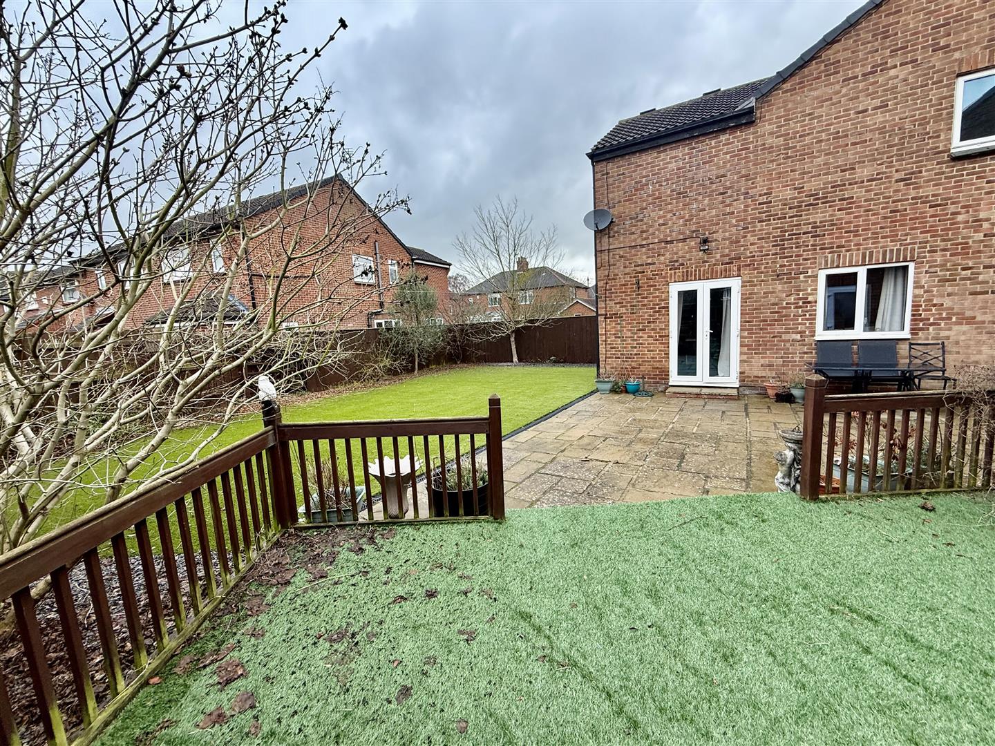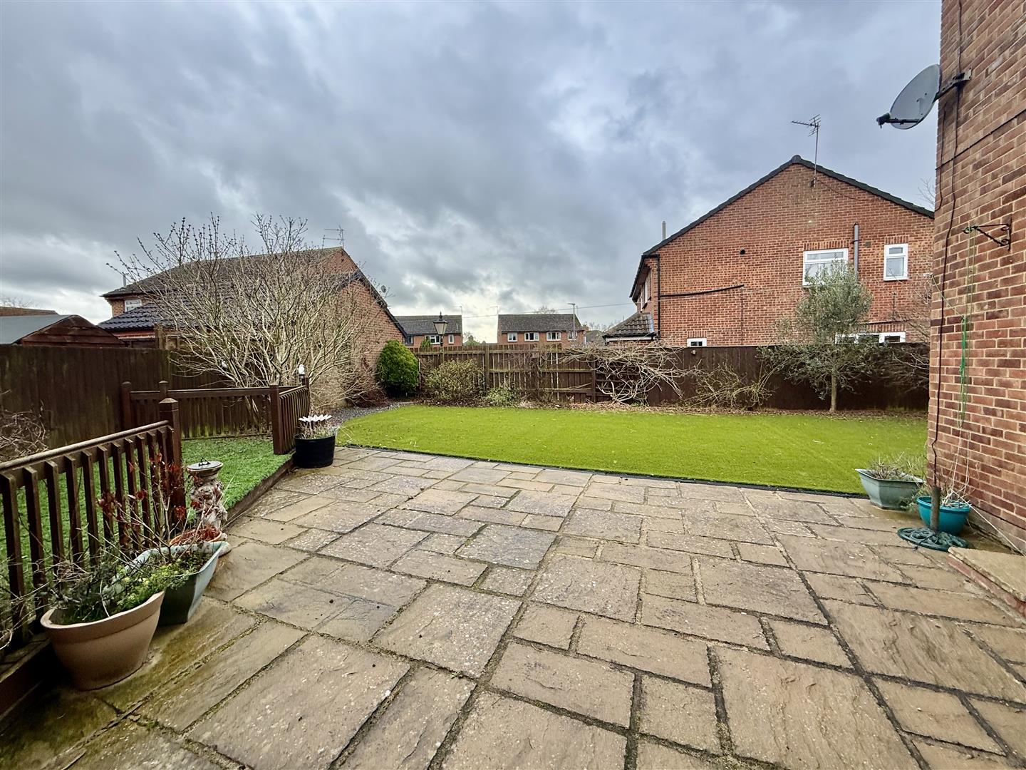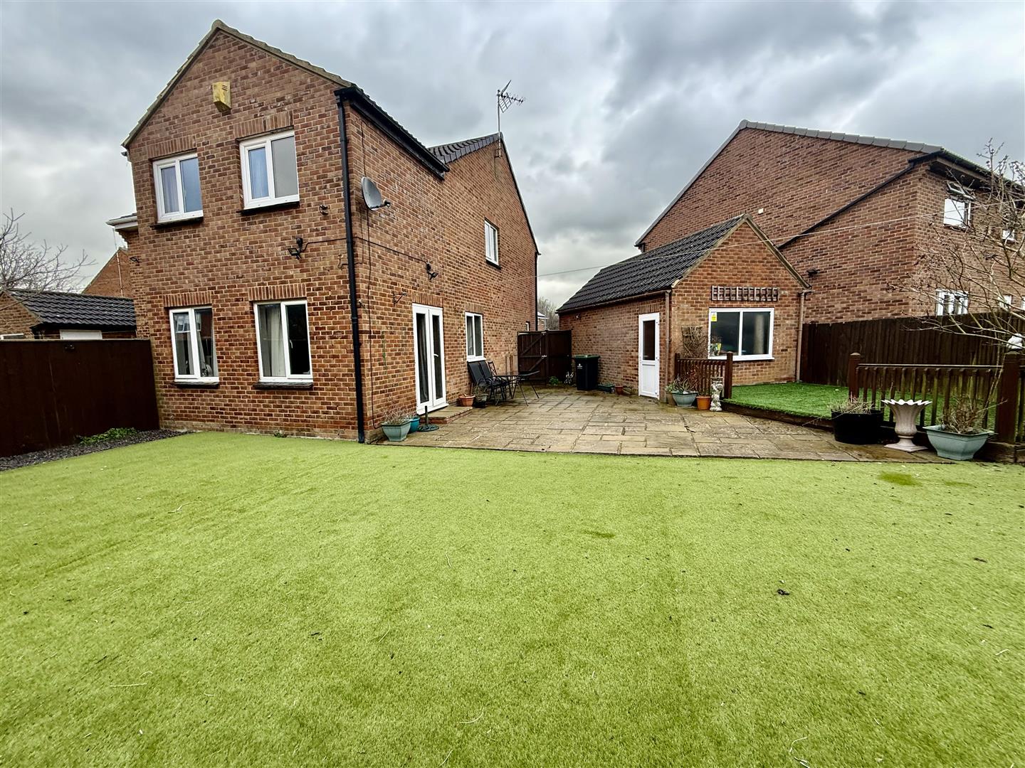 The property occupies a large plot with a sizeable patio to the side and detached brick brick garage within the garden. The lawns have artificial grass for ease of maintenance and edge the borders which have established trees and shrubs. There is also a raised seating area with balustrade and again artificial lawn. A personnel door from the garden leads to the garage (which measures 6.65m x 3.43m) and has an up and over door, light and power. The front of the property is entirely block paved allowing for off street parking.