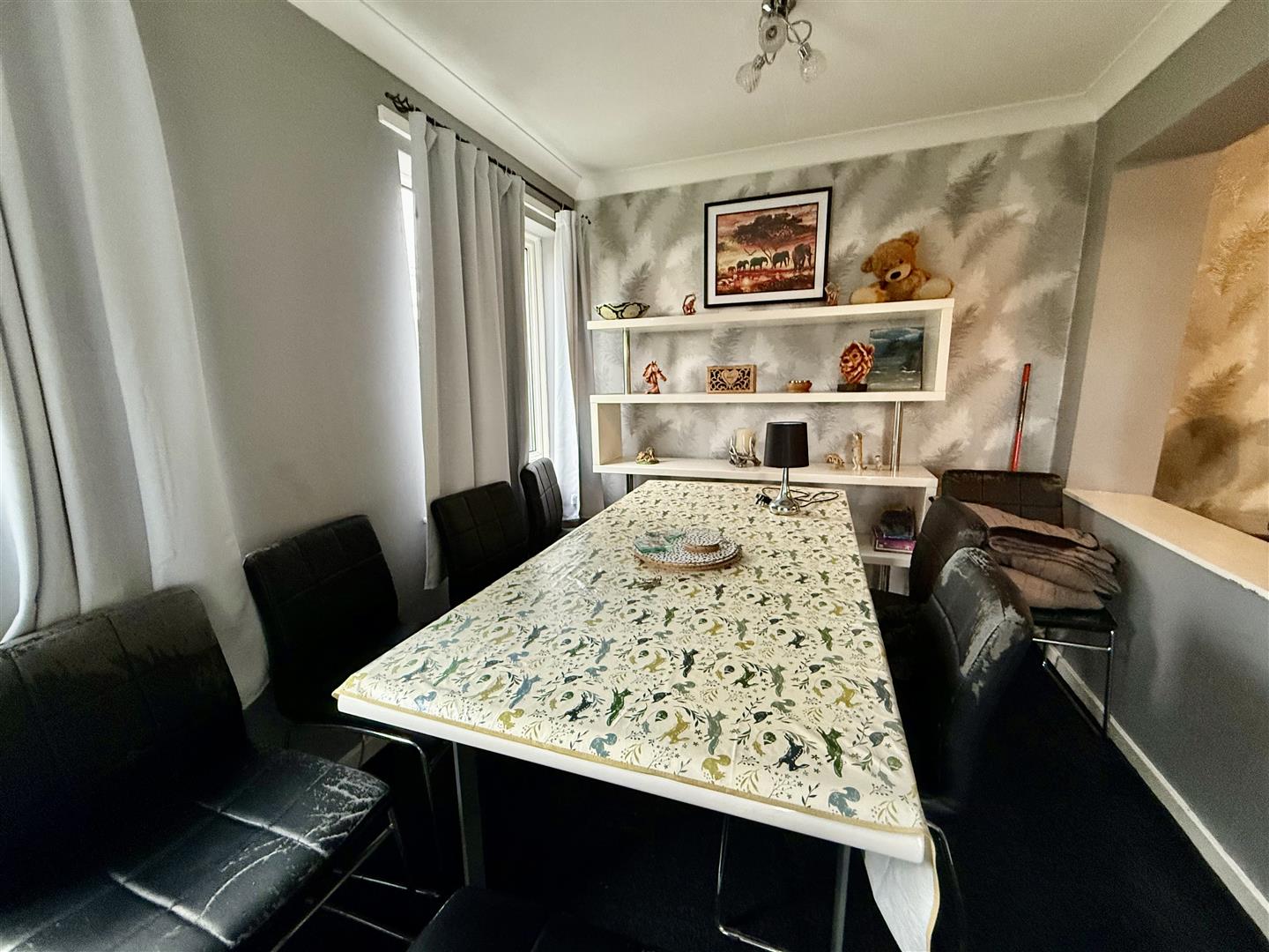 Ideal space for a family dining table and or soft seating with windows to the rear and French doors to the side.