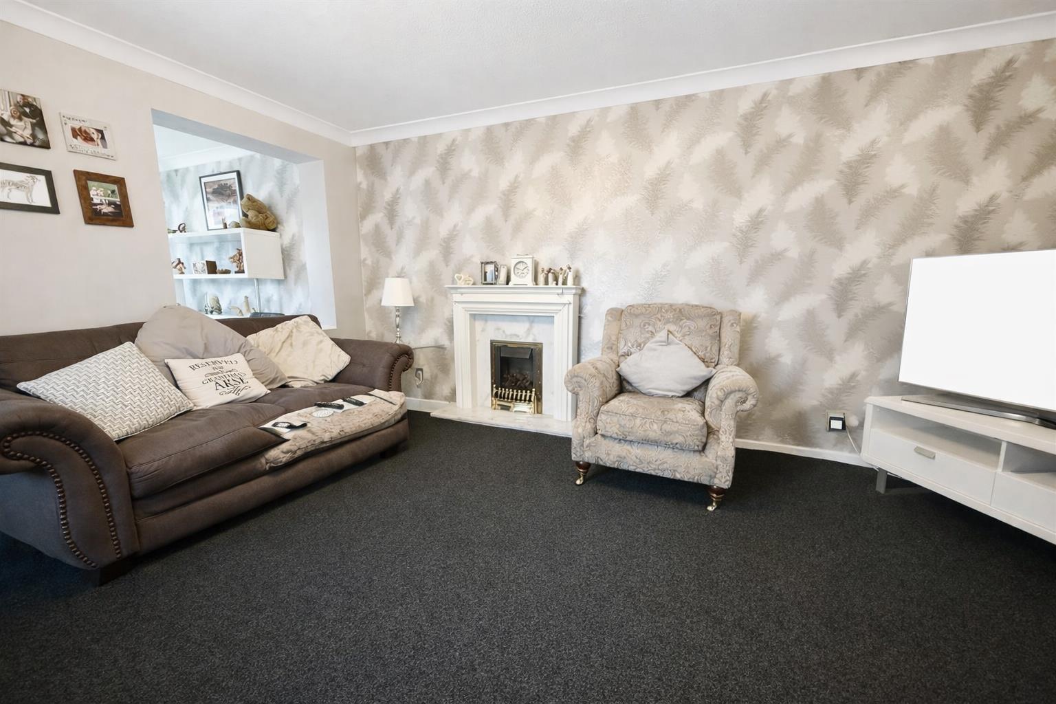 A sizeable reception room with a upvc window to the side aspect, useful under stairs storage cupboard and a feature fireplace as a focal point. The room leads through to the garden room.