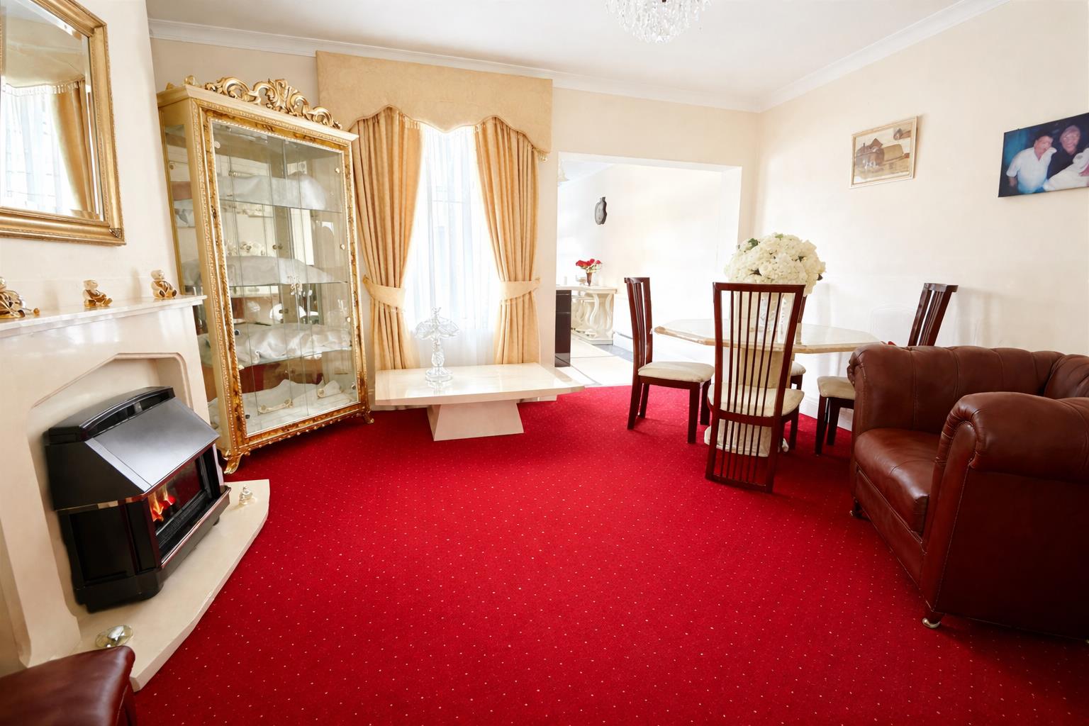 A sizeable reception room with a feature fire surround to the chimney breast and having double doors opening into the dining room. The lounge is tastefully decorated and has a window to the front aspect.