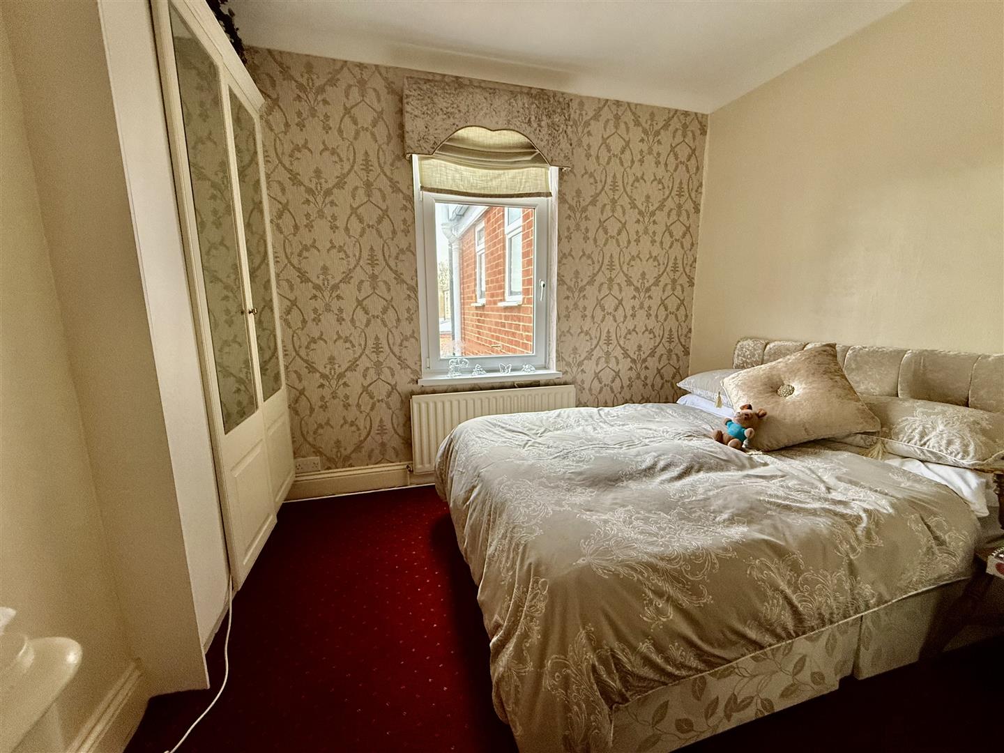 A generous double bedroom with a double fitted wardrobe and a window to the front asect.