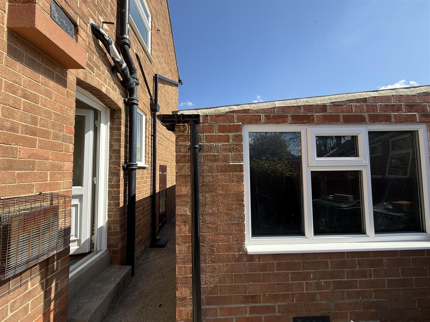Fitted cabinets with complementing worksurfaces. The floor mounted centrall heating boiler is situated here. There is a window to the side and rear and door to the side also.