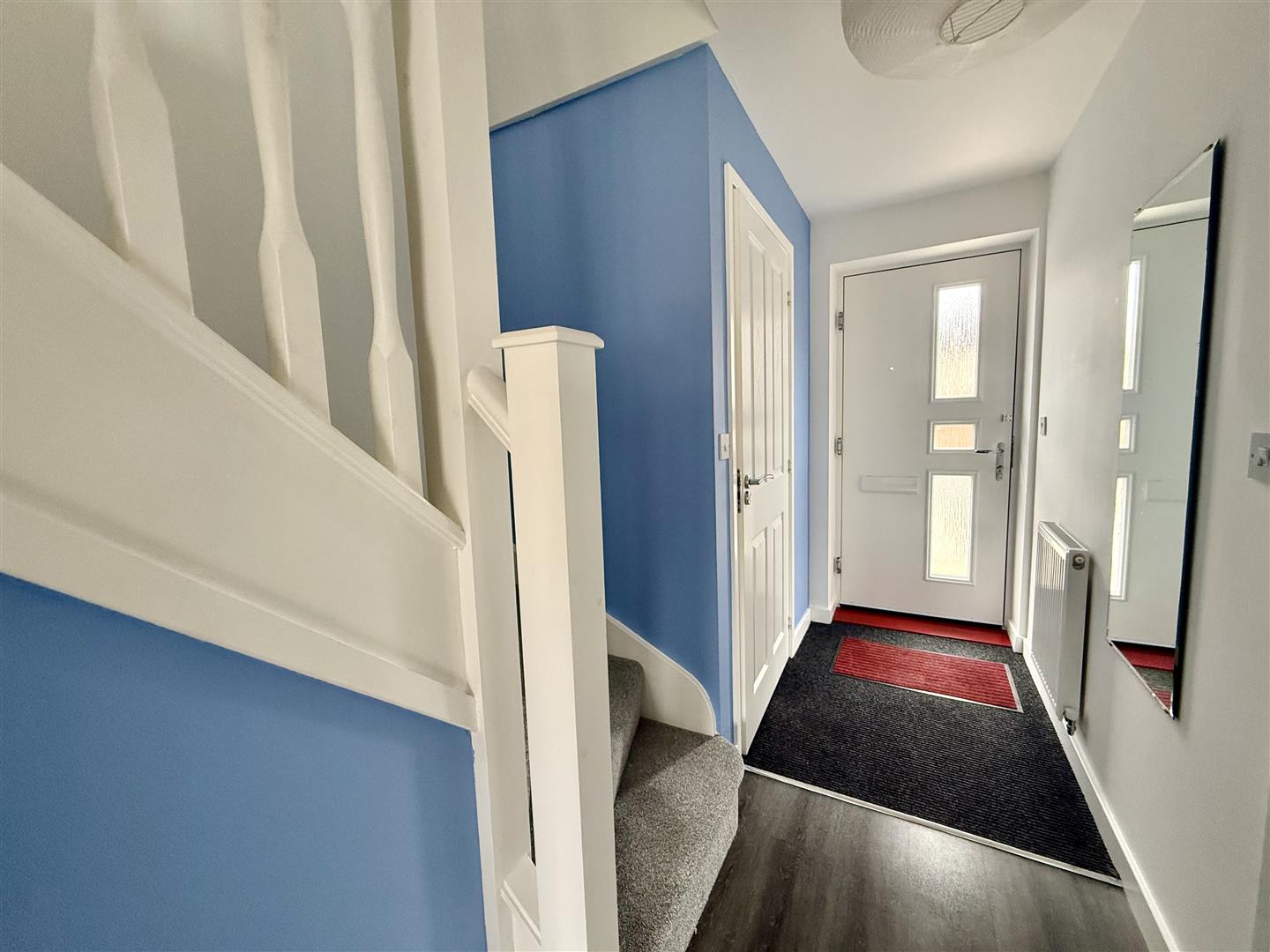 A large reception hallway with access to the kitchen and lounge/dining room and the cloaks/WC.